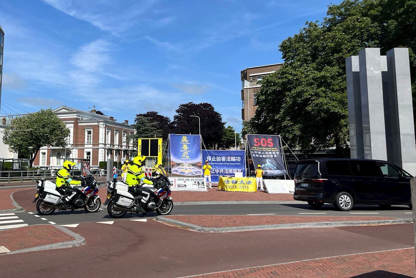 Ovogodišnji samit NATO-a održan je u Hagu, u Holandiji, od 24. do 26. juna. Šefovi zemalja članica NATO-a, uključujući predsednika SAD Donalda Trampa i predsednika Ukrajine Volodimira Zelenskog, okupili su se u Svetskom forumu na konferenciji. Praktikanti Falun Gonga u Holandiji održali su aktivnosti kod Palate mira (Vredespalajs), koja se nalazi 2,8 km od Svetskog foruma, kako bi pozvali svet da obrati pažnju na 26-godišnji progon Falun Gonga od strane Komunističke partije Kine (KPK). Automobili koji su prevozili učesnike na samit prolazili su pored mesta gde su praktikanti mirno protestovali protiv progona.
