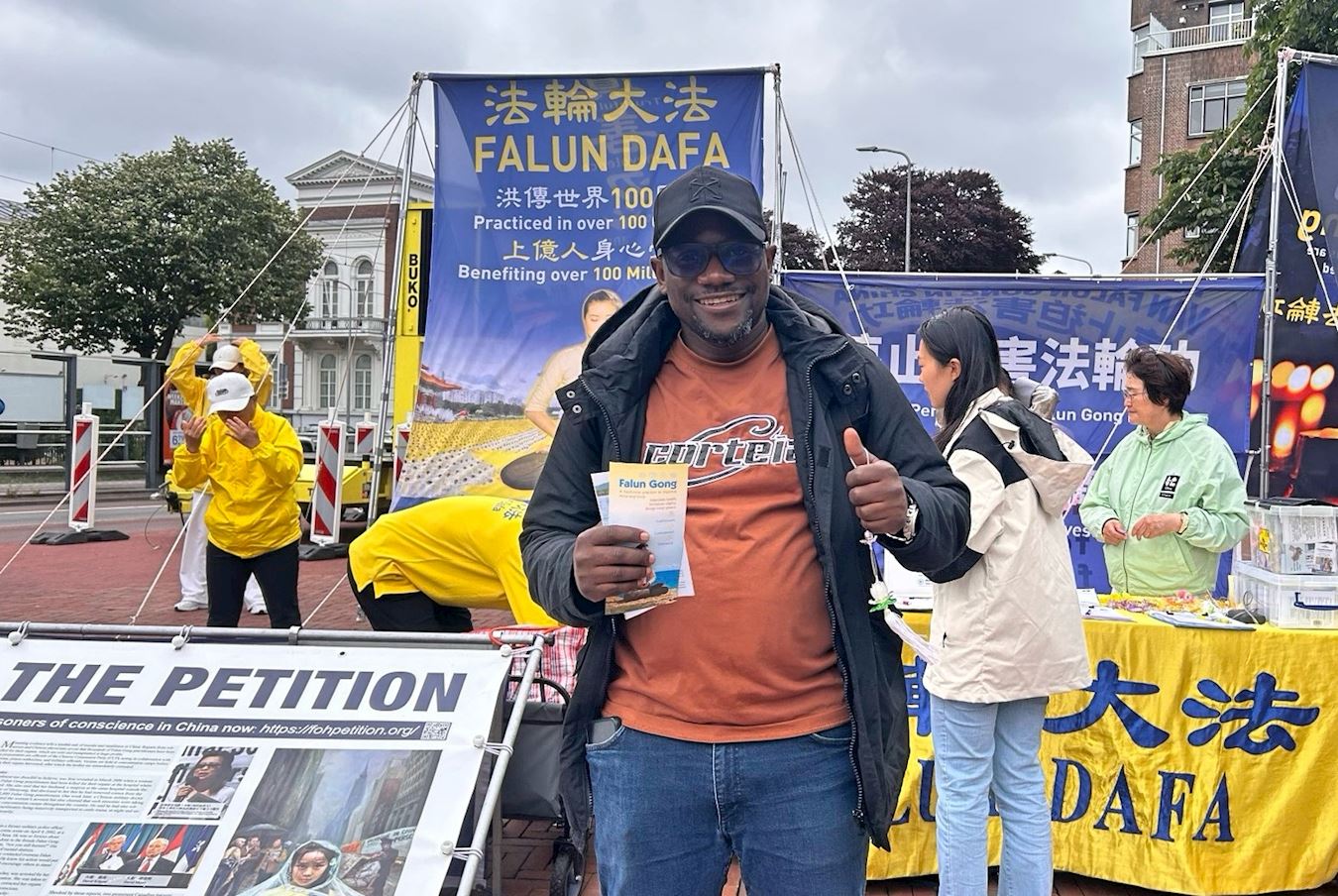 Manuel, koji uskoro treba da diplomira na Pravnom fakultetu Univerziteta u Mastrihtu, posetio je Palatu mira sa prijateljima. Rekao je da je palata simbol pravde za zapadni svet, pa čak i za ceo svet. Potpisao je peticiju protiv progona i primetio: „[Načela Falun Gonga] Istinitost, Blagost, Trpeljivost su izvanredne vrednosti. Svi bi trebalo da ih primenjuju u svakodnevnom životu. To su važna načela.“