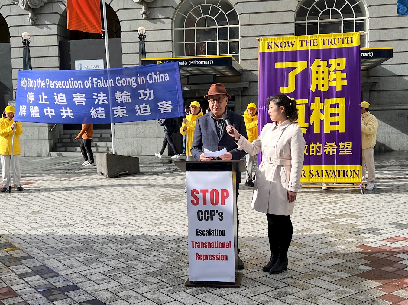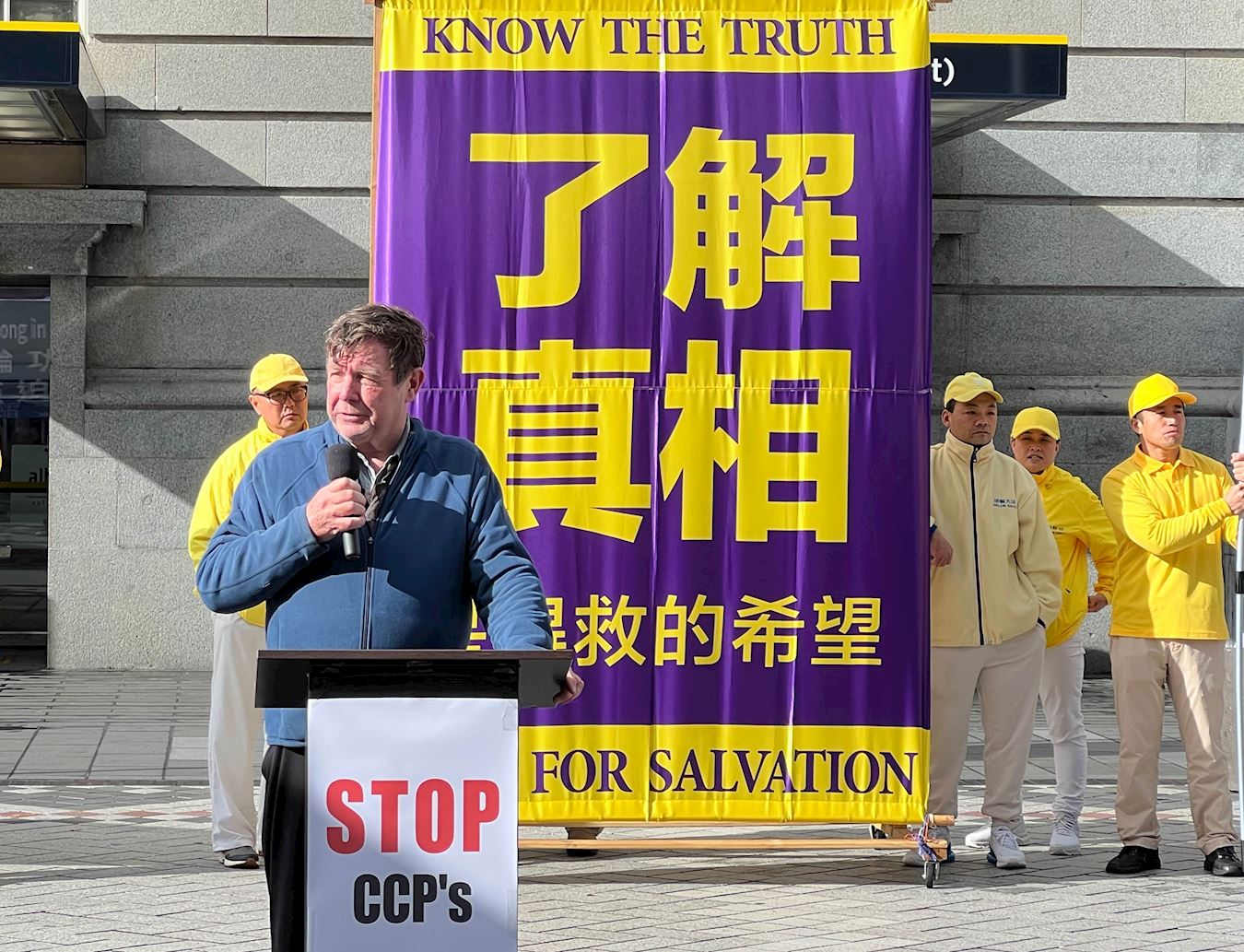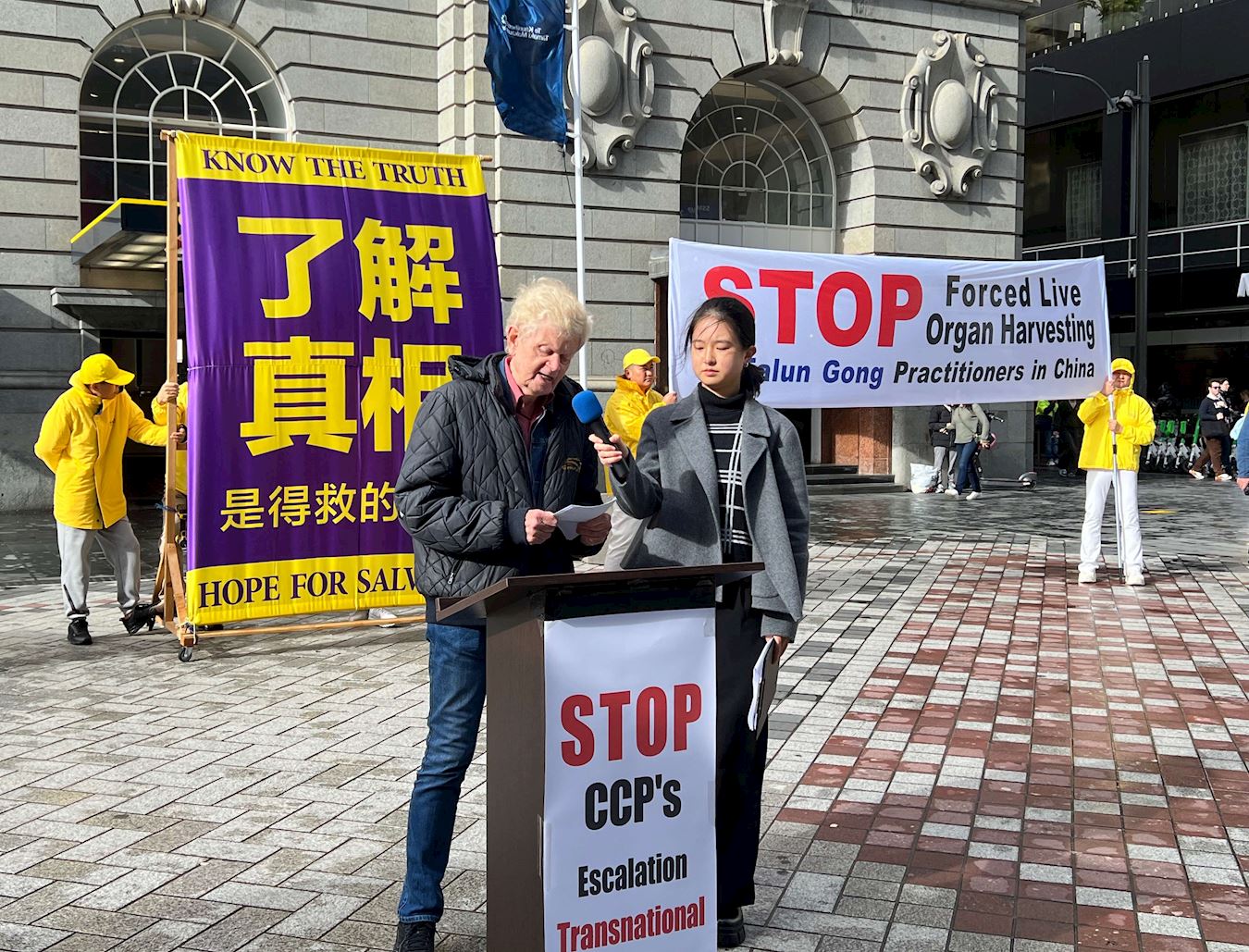 Peter Dormon, predsjednik organizacije Prijatelji Tibeta - Novi Zeland, je rekao da praktikanti Falun Gonga odbijaju slijediti naredbe KPK jer mogu samostalno razmišljati. Na skupu je rekao: „Danas odajemo počast svim praktikantima Falun Gonga koji su pretrpjeli mučenja i zatvaranje KPK i izgubili svoje važne organe (protiv svoje volje).“