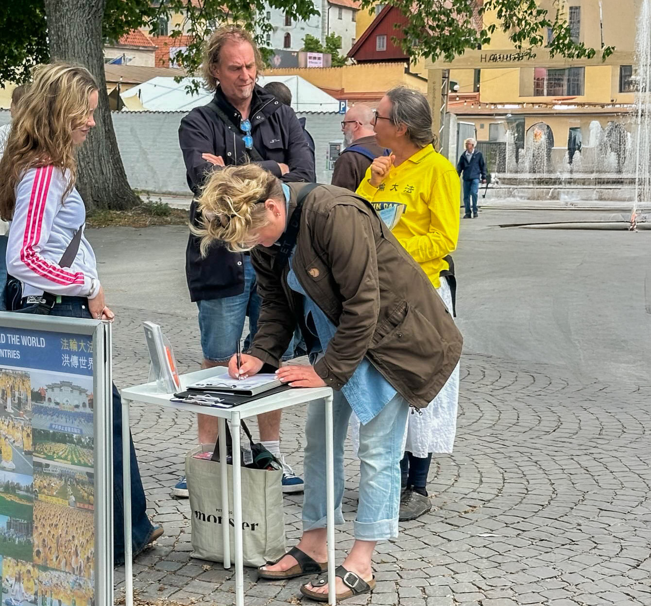 Praktikanti su predstavili Falun Gong (Falun Dafu) i obavestili ljude o 26-godišnjem progonu od strane Komunističke partije Kine (KPK). Njihovi napori su privukli pažnju i podršku brojnih švedskih političara i javnosti.