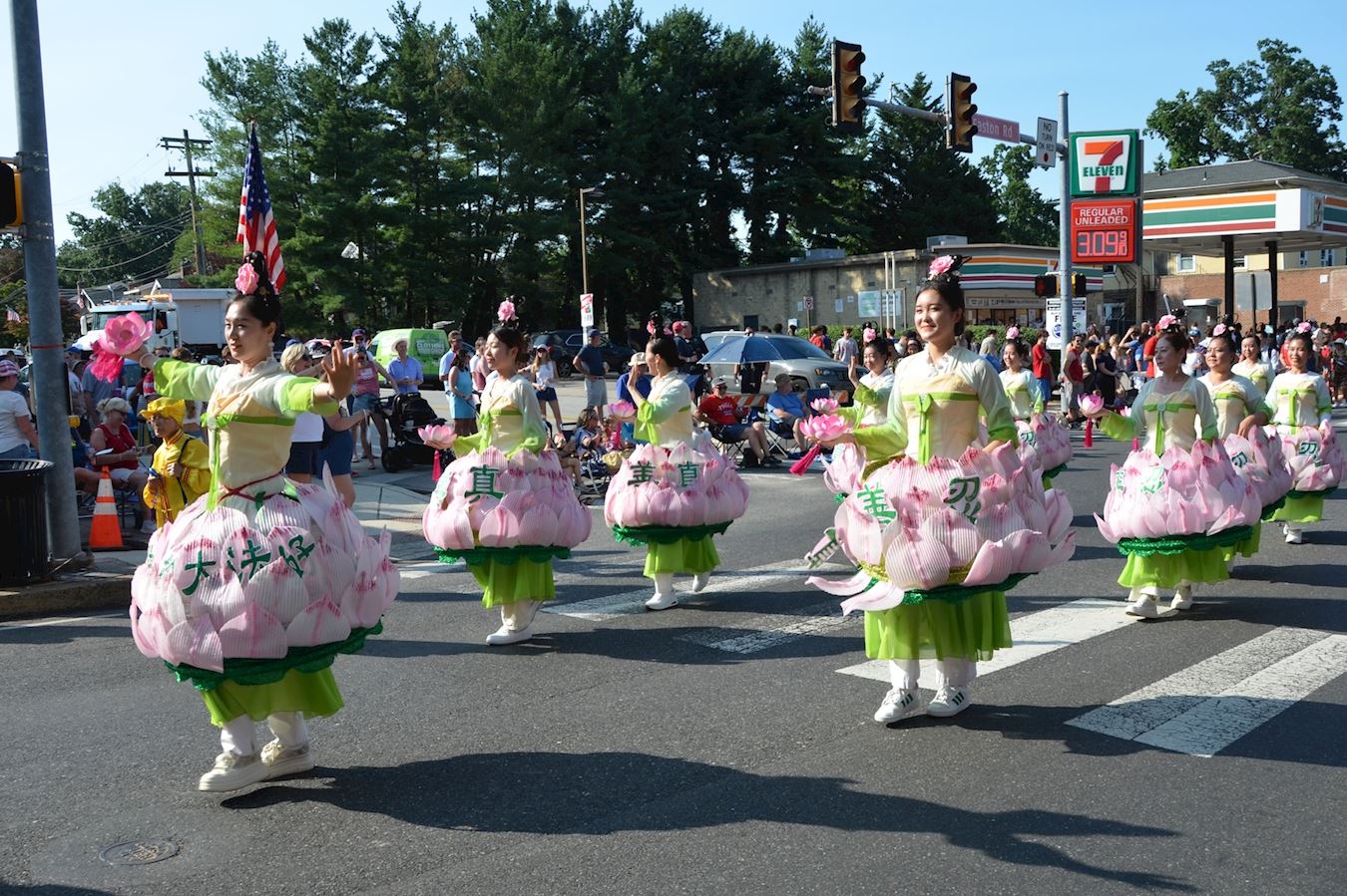Philadelphia, rodno mjesto Deklaracije o neovisnosti, i njezino predgrađe Glenside, održali su 4. srpnja velike parade u čast 249. Dana neovisnosti. Praktikanti Falun Dafa bili su pozvani na oba događaja kako bi se pridružili svečanostima zajedno s drugim sudionicima odjevenim u razne etničke kostime. Tim praktikanata koji su svirali bubnjeve oko struka i grupa lotosovog cvijeta doputovali su iz New Yorka kako bi sudjelovali i bili su dobro primljeni od strane gledatelja.