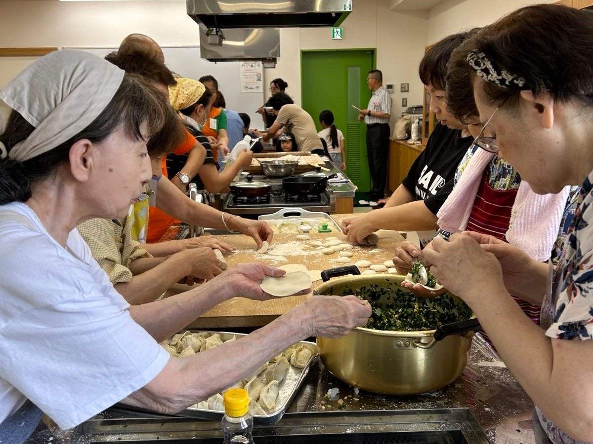 Praktikanti Falun Dafe iz grada Omija, u prefekturi Saitama, udružili su se sa nevladinom organizacijom „Etičko udruženje za poslovanje“ kako bi poslednjeg vikenda juna 2025. godine organizovali zabavu s knedlama.