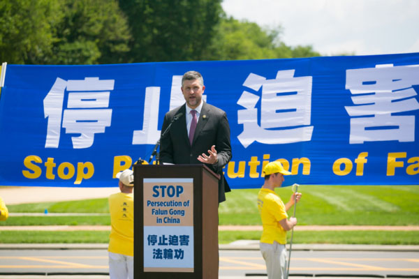 Kongresmen Pat Ryan (D-N.Y.) se na mitingu obratio pred više od hiljadu praktikanata: „Hvala svima što ste u prkos vrućini došli da nam se pridružite. Vaše prisustvo ovdje predstavlja milione ljudi. Vaš glas i prisustvo imaju značaj. Čast mi je biti ovdje s vama i svjedočiti vašem prisustvu - to je dokaz vaše duboke predanosti principima Falun Gong-a.