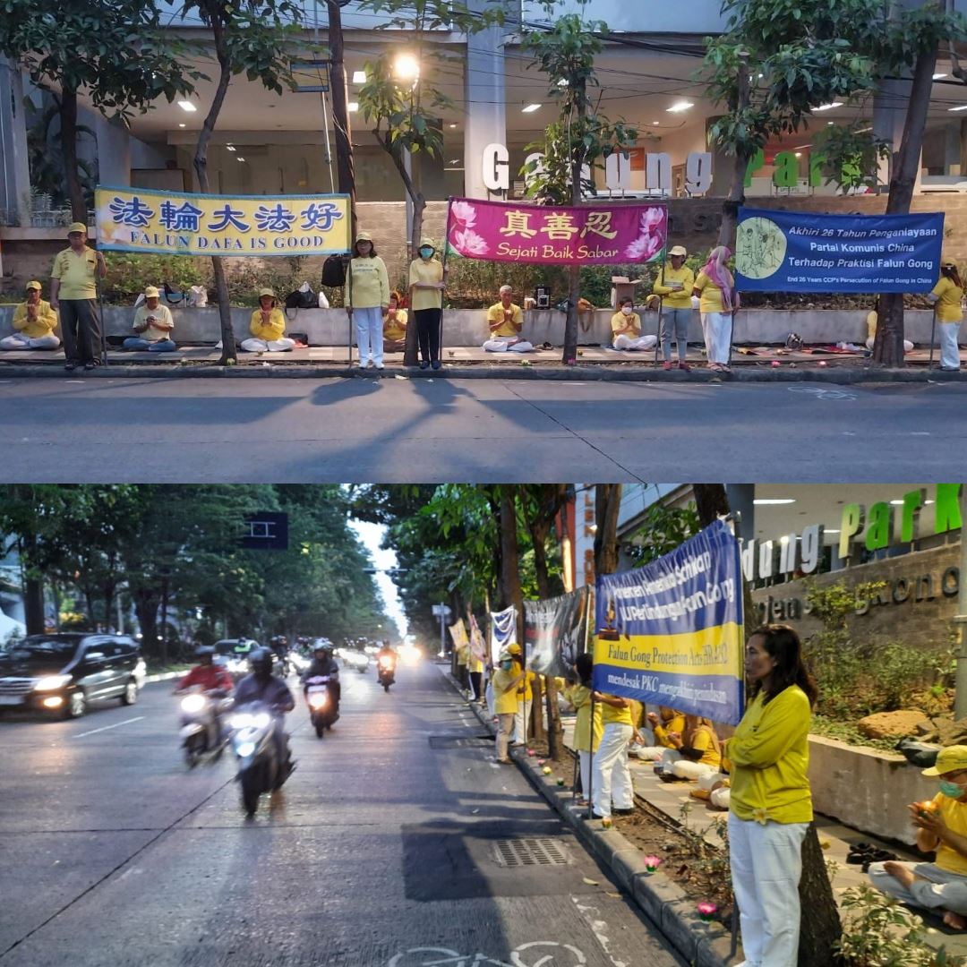 Praktikanti Falun Gonga u Džakarti i Surabaji održali su aktivnosti u subotu, 12. jula 2025, obeležavajući 26 godina otkako je Komunistička partija Kine (KPK) započela suzbijanje duhovne prakse u Kini.