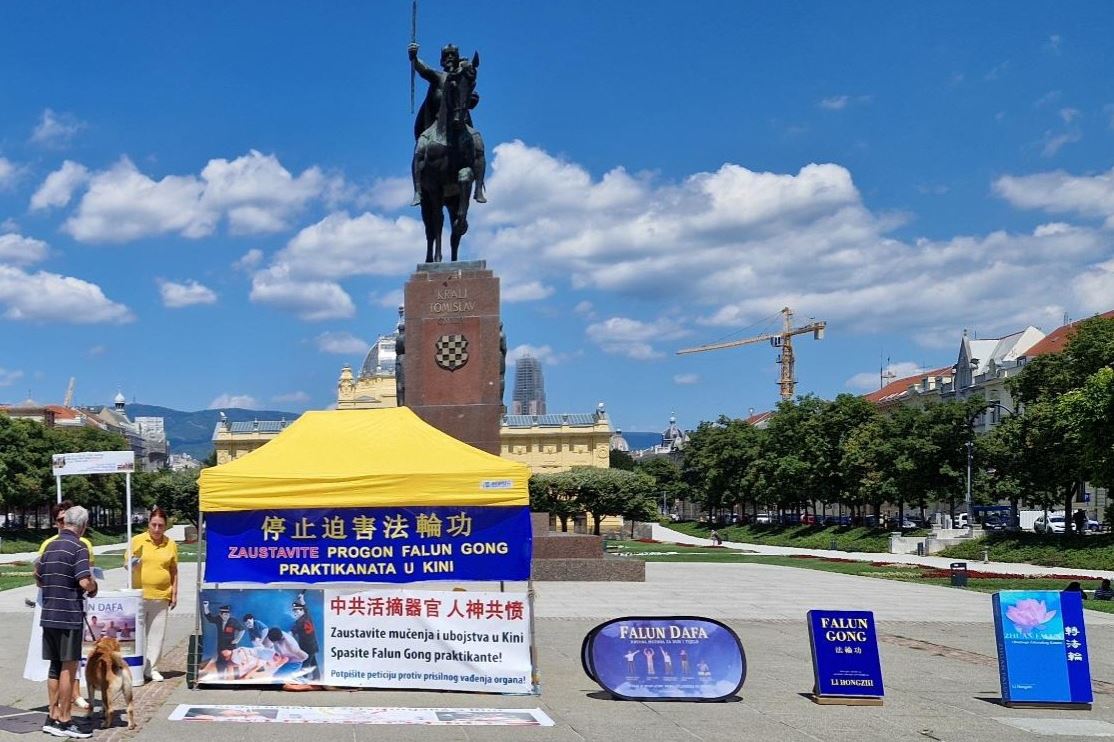 Praktikanti su 19. srpnja 2025. u Zagrebu, glavnom gradu Hrvatske, održali skup pozivajući na prekid 26-godišnjeg progona. Mnogi ljudi su saznali za progon Falun Gonga kojeg provodi Komunistička partija Kine (KPK) i potpisali peticiju kako bi pokazali svoju podršku naporima praktikanata da se okonča progon.