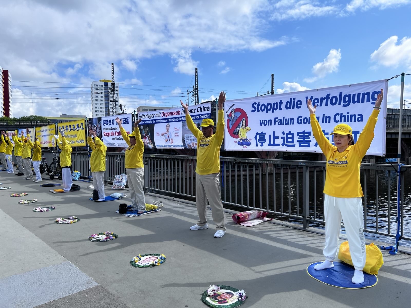 Progon Falun Gonga od strane kineskog režima traje već 26 godina. Od 17. do 23. jula ove godine, praktikanti Falun Gonga u Nemačkoj okupili su se ispred kineske ambasade u Berlinu i ispred kineskih konzulata u Minhenu, Frankfurtu i Diseldorfu. Držali su transparente, prikupljali potpise za peticije i predali pismo u kojem pozivaju Komunističku partiju Kine (KPK) da odmah okonča progon koji je u toku. Praktikanti su prolaznicima objašnjavali detalje progona i razotkrivali zločin žetve organa od živih praktikanata u Kini, koji su zatvoreni jer odbijaju da se odreknu svoje vere.