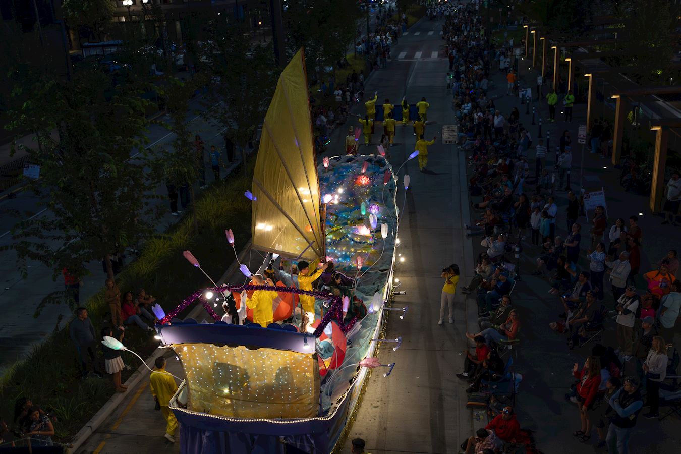 Praktikanti su sedmicu dana ranije učestvovali na Velikoj paradi Capital Lakefair u Olympiji, Washington. Parada je održana tokom dana, pa su praktikanti koristili drugačiju postavku za splav. Osoba zadužena za Lakefair paradu je tog dana bila na Paradi sa bakljadom. Ona je rekla praktikantima da su joj se svidjele obje postavke jer izgledaju predivno. Pozvala je praktikante da ponovo dođu na Lakefair paradu sljedeće godine.