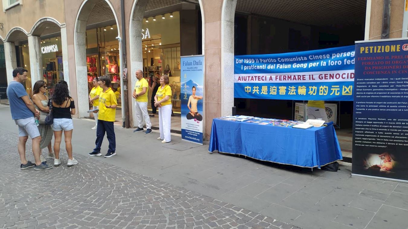 Praktikanti iz severoistočne Italije održali su aktivnosti u Padovi za vikend 19. jula i u Trevizu za vikend 26. jula kako bi ljudima rekli o decenijama dugoj represiji KPK usmerenoj na Falun Dafa praktikante.
