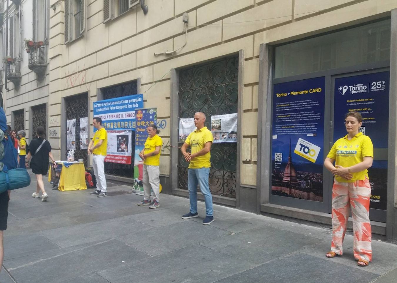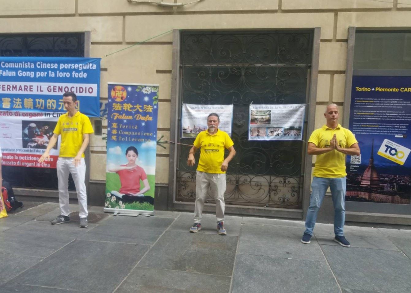 U nedelju, 20. jula, praktikanti su demonstrirali vežbe Falun Dafe u centru Torina i delili materijale za objašnjavanje istine. Događaj je privukao mnoge stanovnike i turiste, a neki su tražili više informacija.