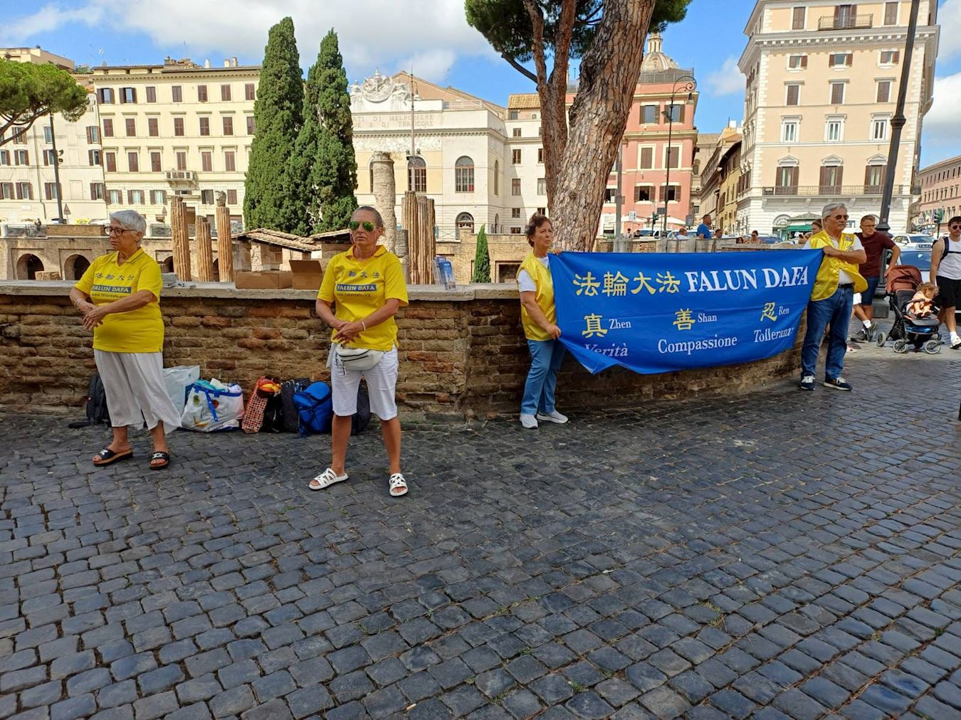 Praktikanti su demonstrirali vežbe i delili flajere na trgu Largo di Tore Ardžentina u centru Rima 26. jula 2025. godine. Događaj je privukao pažnju mnogih prolaznika, koji su se zaustavili da se informišu o situaciji i izrazili svoju podršku i zabrinutost. Neki su potpisali peticiju.