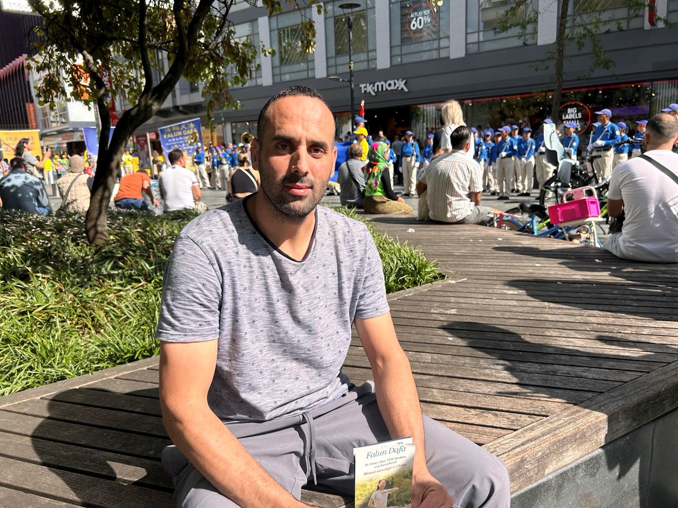 Noven iz Maroka je seo i slušao dok je Tian Guo Marching Band nastupao posle marša. Rekao je da ih je pratio tokom marša tog jutra, i ne zna zašto, ali se osećao sjajno dok je bio sa njima. Nakon što mu je jedan praktikant ispričao o progonu u Kini, rekao je: „Nisam znao za ovo. Svako bi trebalo da ima slobodu, pa se nadam da se možete osloboditi represije. Osećam se prijatno slušajući muziku. Nastaviću da pratim Falun Gong i nadam se da ćete uspeti da zaustavite progon!“