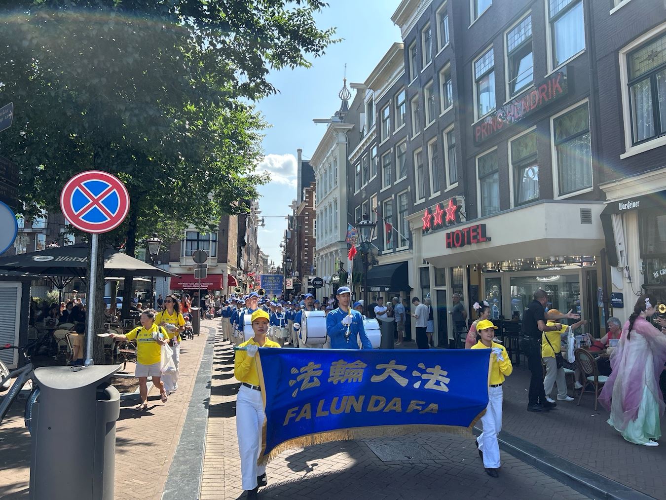 U nedjelju, 10. kolovoza 2025., praktikanti su u glavnom gradu Amsterdamu održali mimohod i skup kako bi pozvali na okončanje progona Falun Dafa. Nizozemske podružnice Amnesty Internationala i Human Rights Without Borders, poslali su pisma podrške. Posjetitelji iz cijelog svijeta pohvalili su Falun Dafa. Amsterdamska policija izrazila je svoju podršku i pohvalila praktikante kao najprijateljskiju grupu s kojom je surađivala.