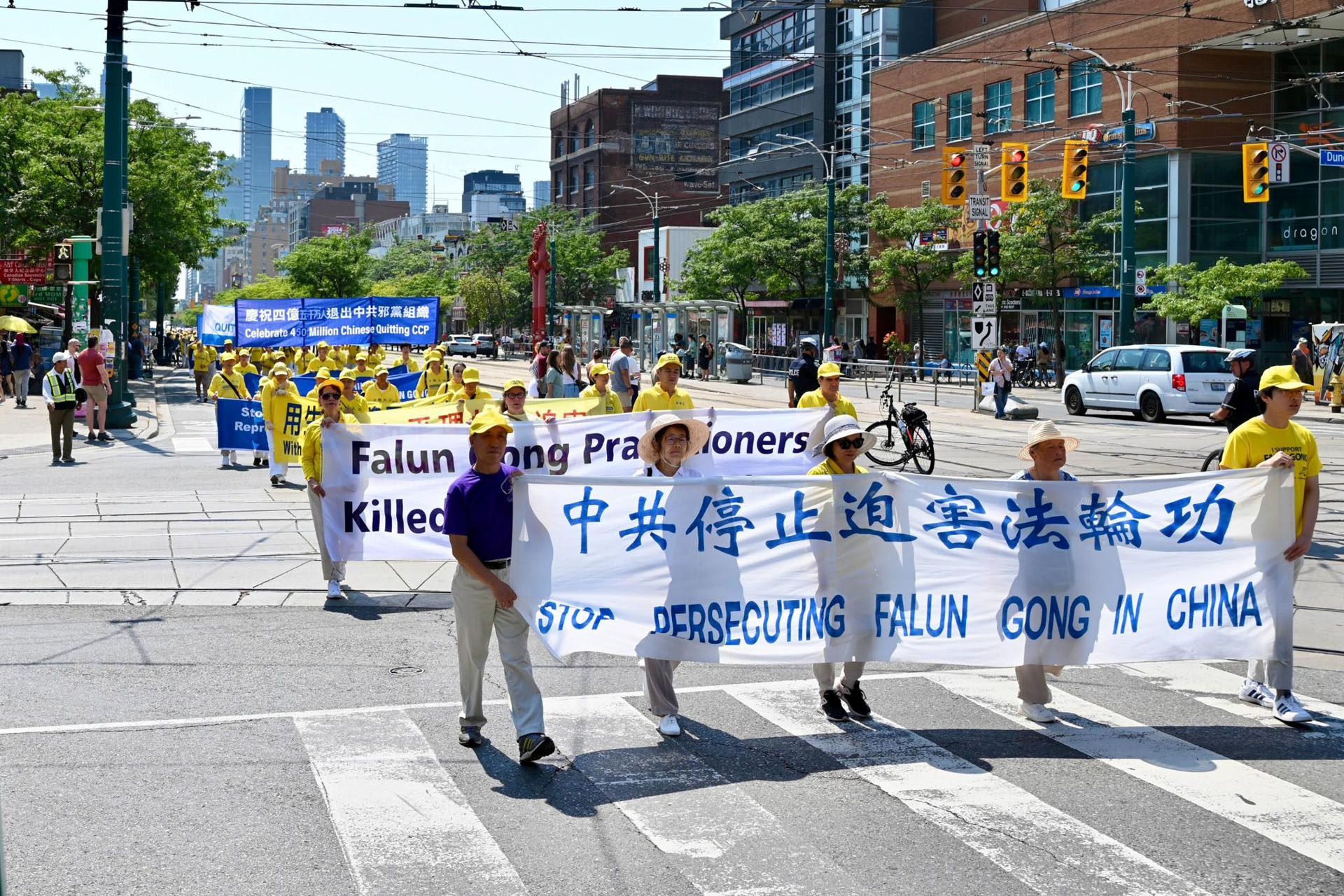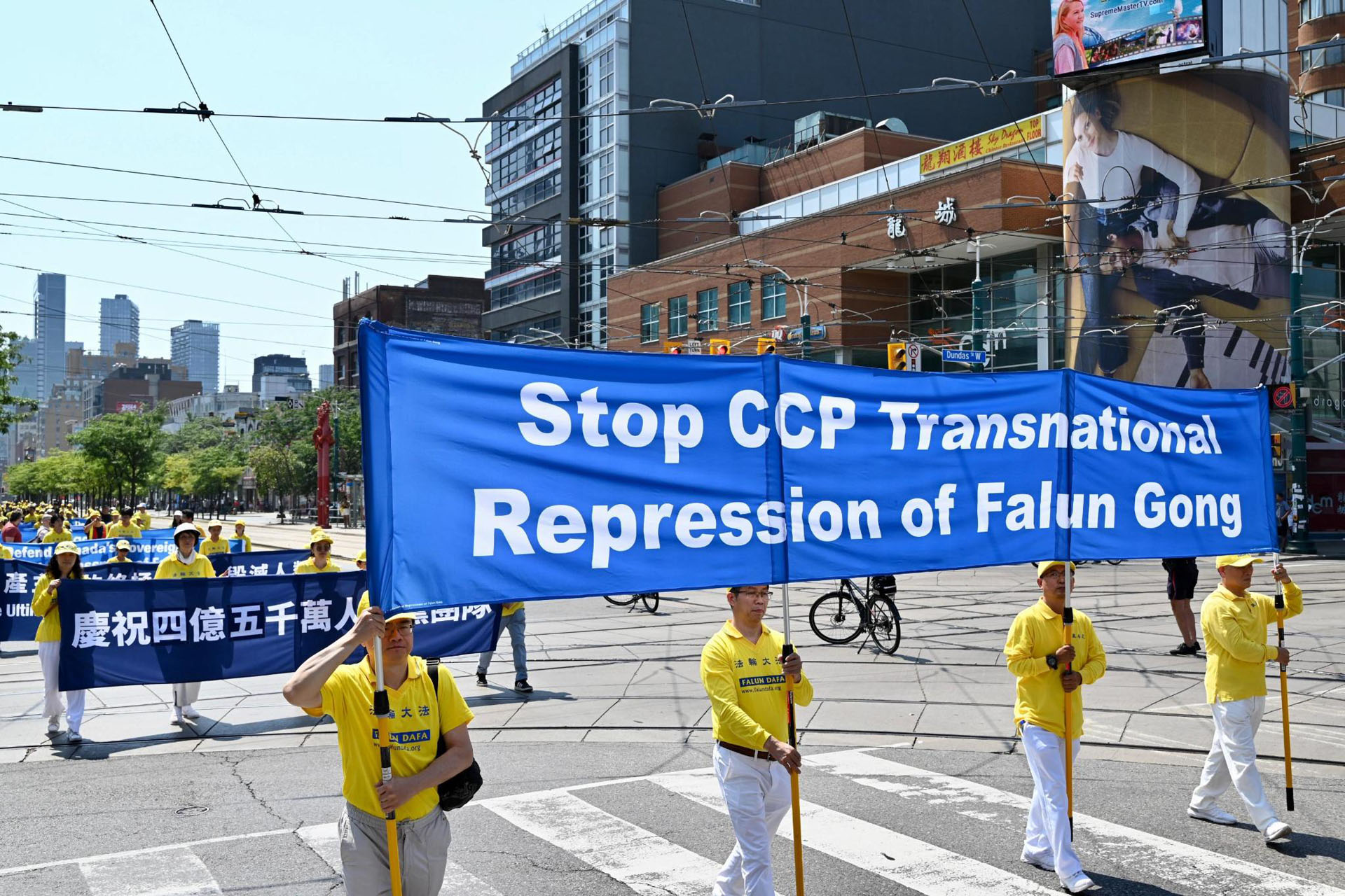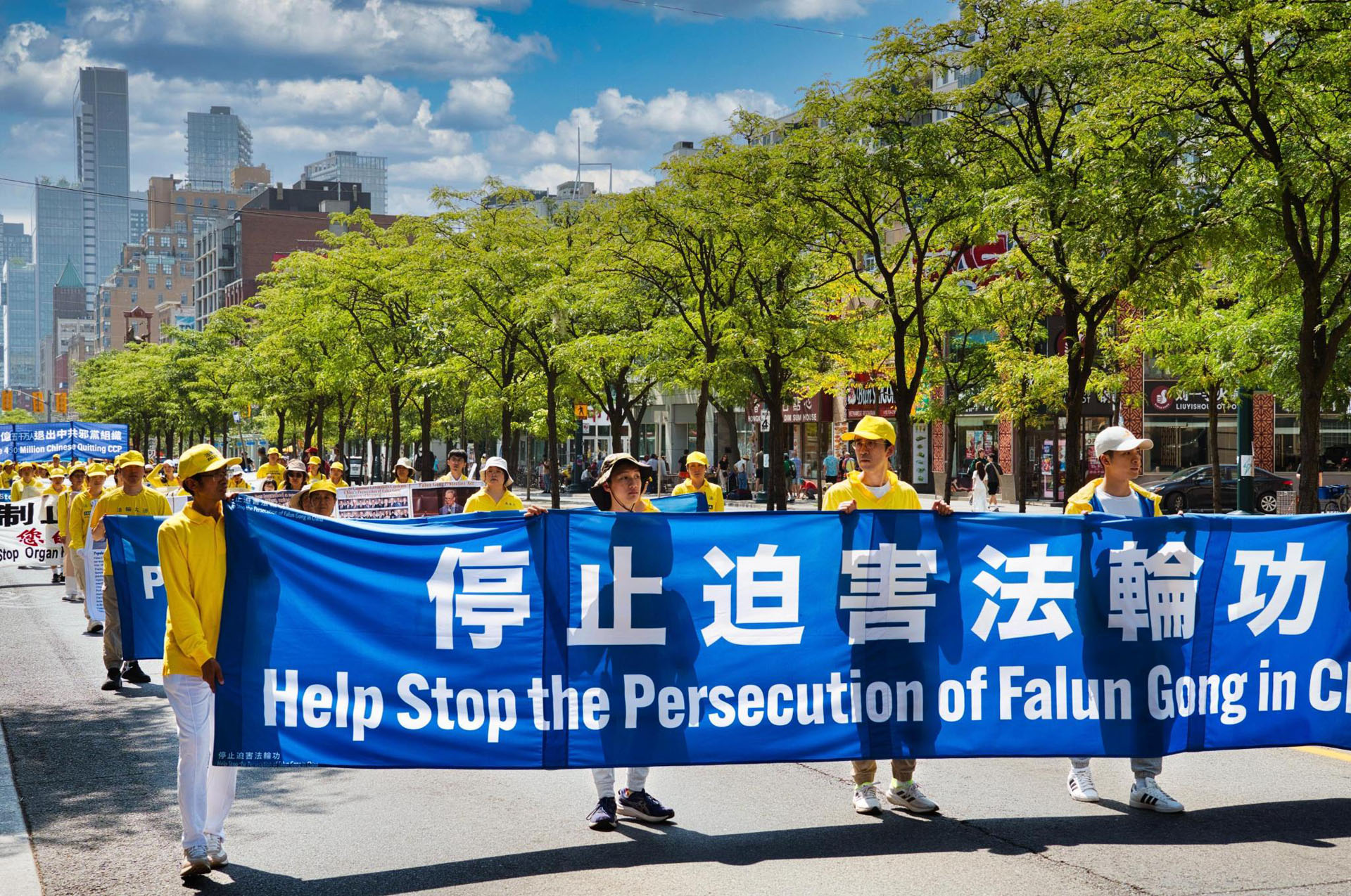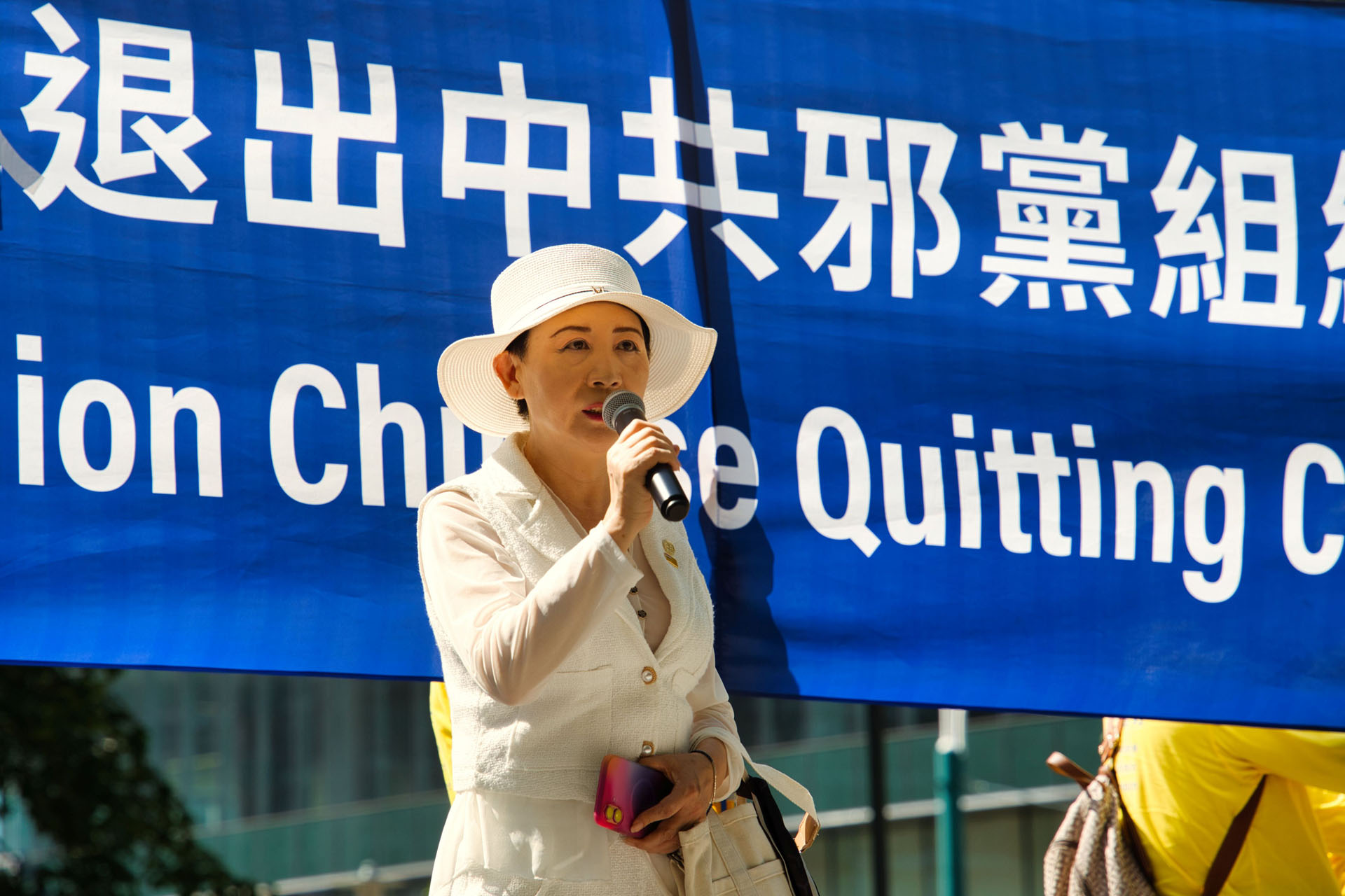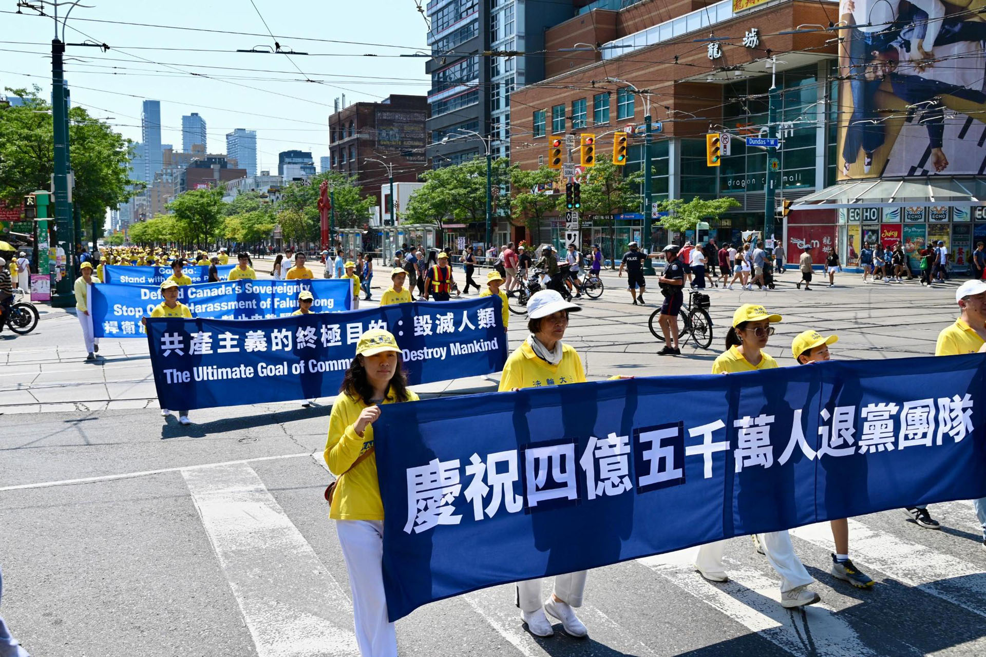 Praktikanti Falun Dafa u Torontu održali su skup u parku Clarence Square u blizini Kineske četvrti 16. kolovoza 2025. kako bi čestitali 450 milijuna Kineza koji su istupili iz Komunističke partije Kine (KPK) i njezinih omladinskih organizacija. Odali su počast svima koji su hrabro donijeli ovaj izbor i pozvali su sve sektore kanadskog društva da pomognu u zaustavljanju transnacionalne represije KPK nad praktikantima Falun Dafa koji žive u Kanadi. Ljudi iz svih sfera života govorili su na skupu, izražavajući svoju podršku i zahvalnost za mirni prosvjed praktikanata Falun Dafa, posebno u pomaganju javnosti da shvati pravu prirodu KPK.