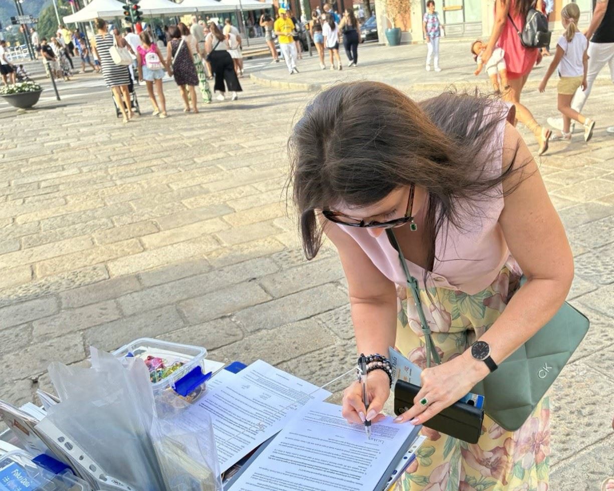 1. avgusta, praktikanti u severnoj Italiji održali su događaj u Komu. U podnožju Alpa, pored Švajcarske i na obali jezera Komo, Komo je još jedna popularna turistička destinacija gde su ljudi sa zadovoljstvom čuli za Falun Dafu..
