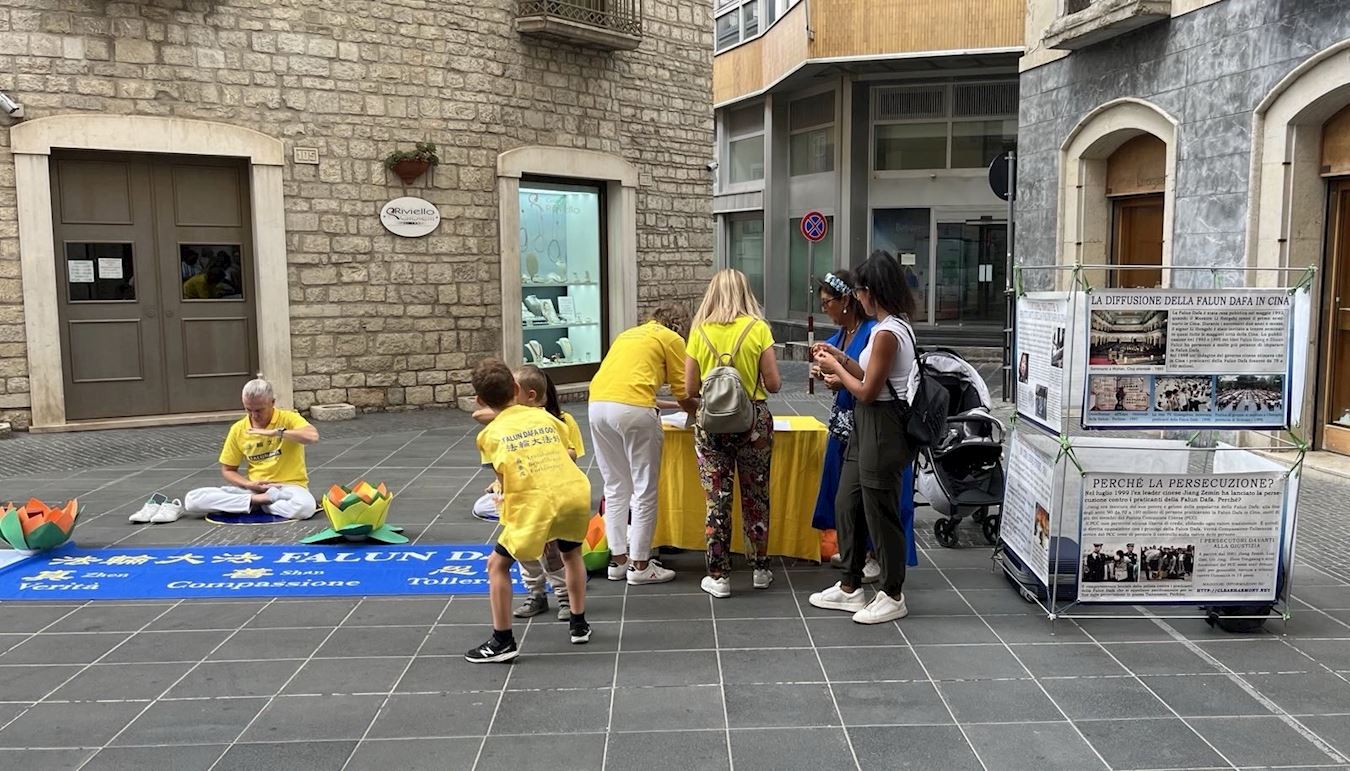 Tokom letnjeg špica turističke sezone, praktikanti u Italiji održali su događaje u nekoliko gradova kako bi turistima predstavili Falun Dafu i razotkrili progon od strane Komunističke partije Kine (KPK). Ljudi iz Italije i drugih zemalja složili su se sa principima Istinitosti-Blagosti-Trpeljivosti i ohrabrili praktikante da nastave sa svojim naporima.