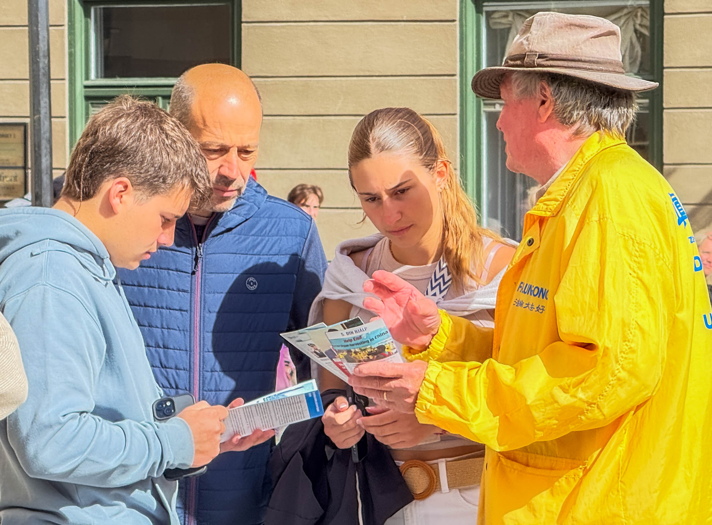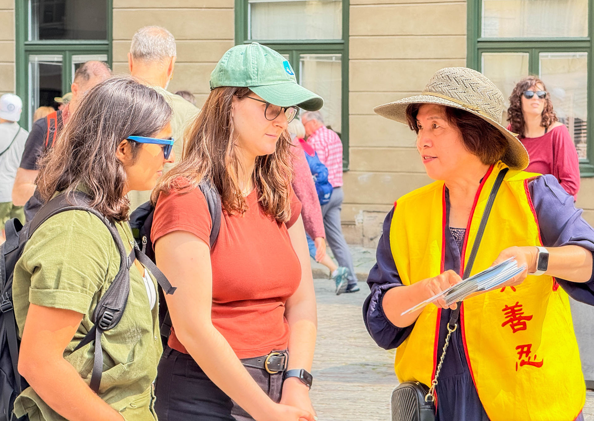 Jedan lokalni kineski turistički vodič često je vodio svoje turiste do štanda da saznaju o Falun Dafi i podsticao ih je da prihvate materijale. Rekla im je: „Nikad ne slušajte stvari koje oni promovišu u Kini. Ovi ljudi [praktikanti Falun Dafe] su svi veoma ljubazni i mnogi od njih su moji dugogodišnji prijatelji.“