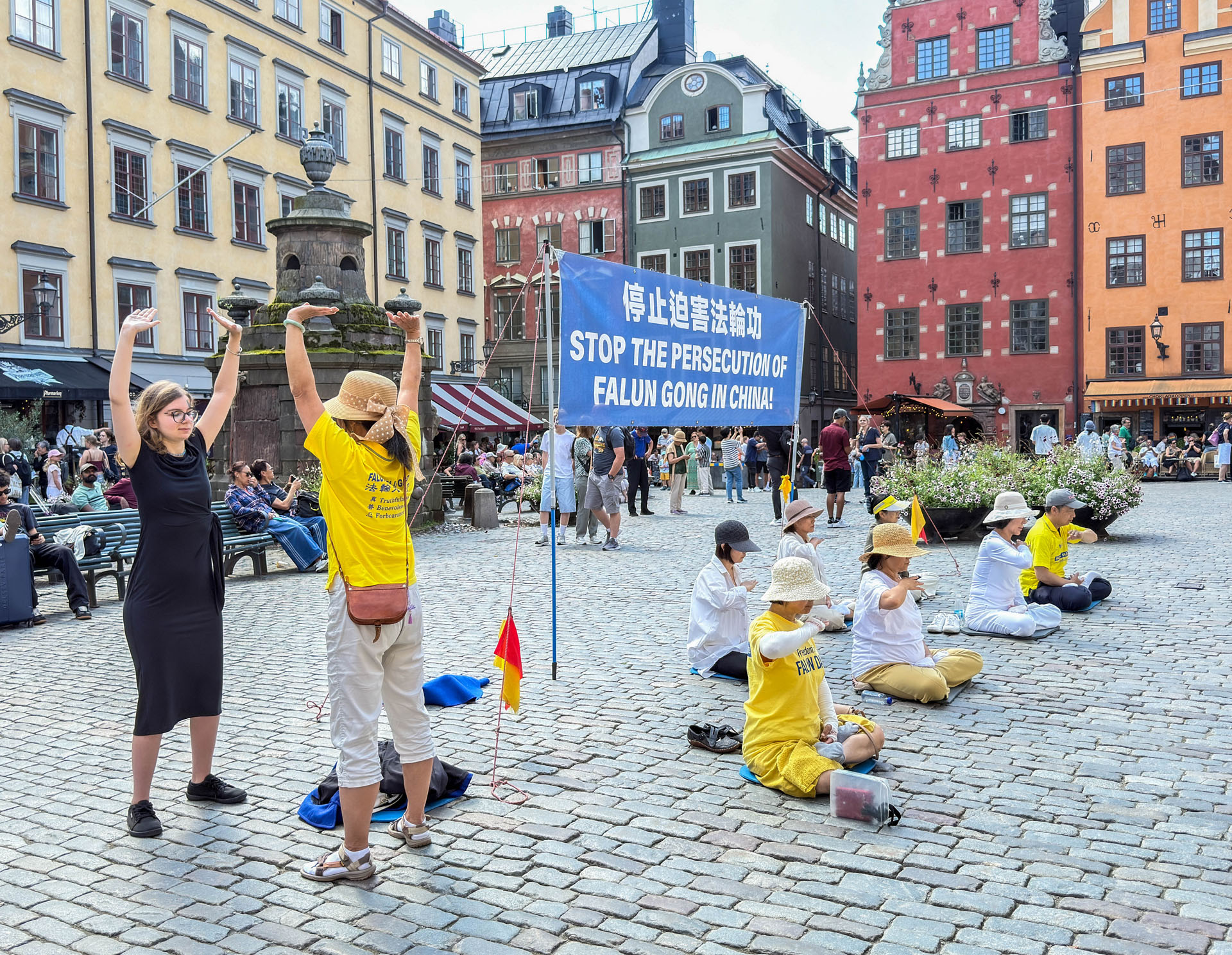 Svaki put kada su vodiči dovodili turističke grupe na to područje, prijateljski su pozdravljali praktikante i objašnjavali svojoj grupi zašto praktikanti demonstriraju vežbe i dele materijale tamo. Mnogi turisti su tada prilazili štandu da bi se fotografisali ili uzeli materijale. Materijali su bili dostupni na željenim jezicima turista, i oni su počeli da ih čitaju na licu mesta. Nakon razumevanja šta se dešava u Kini, ljudi su potpisali peticiju i izrazili svoje divljenje i podršku mirnim naporima praktikanata Falun Dafe da okončaju progon.