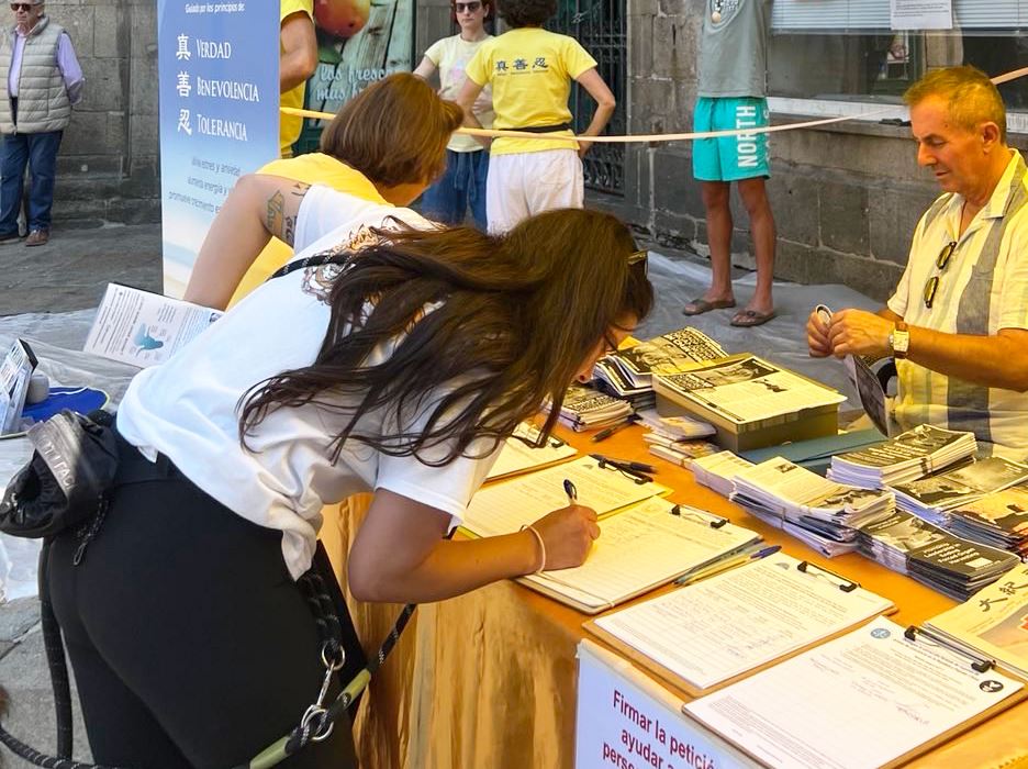 Falun Dafa praktikanti u Španiji održali su događaj u Santjago de Komposteli na severozapadu Španije, 23. i 29. avgusta 2025, kako bi podigli svest o progonu koji sprovodi Komunistička partija Kine (KPK) u Kini. Postavili su štand na Praza do Toural u centru grada, razgovarali o Falun Dafi i prikupljali potpise za peticiju kojom se poziva na okončanje progona. Trg je okružen zgradama iz 18. i 19. veka i povezuje starije i novije delove grada. To je popularno mesto okupljanja za meštane, turiste i hodočasnike koji prolaze Putem Svetog Jakova (Camino de Santiago).
