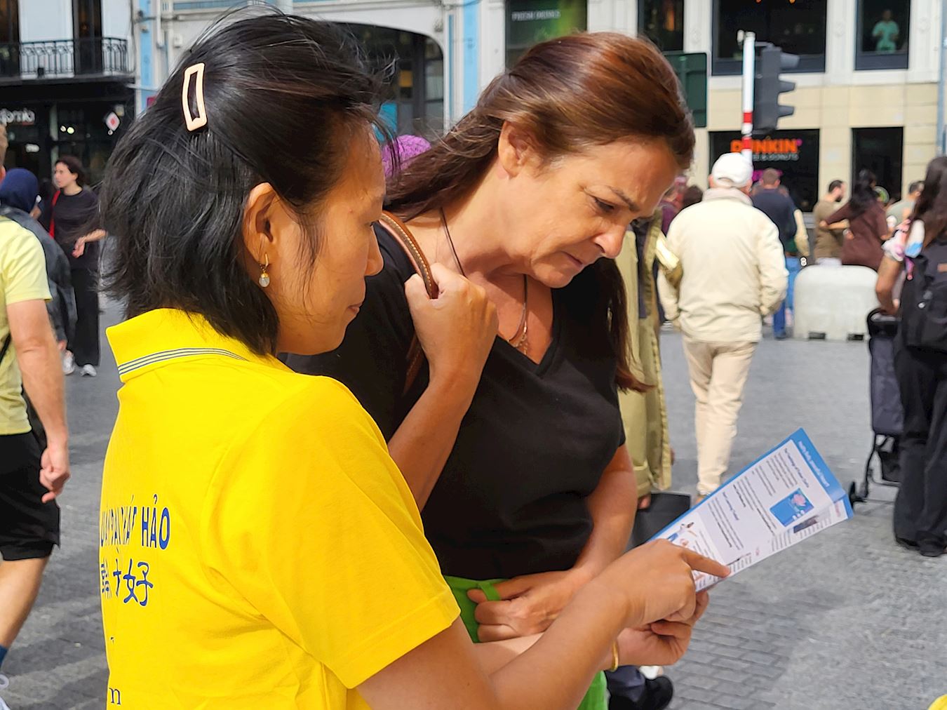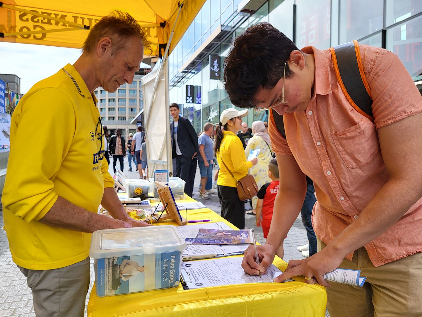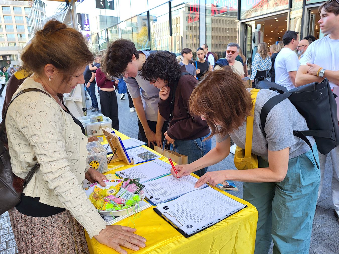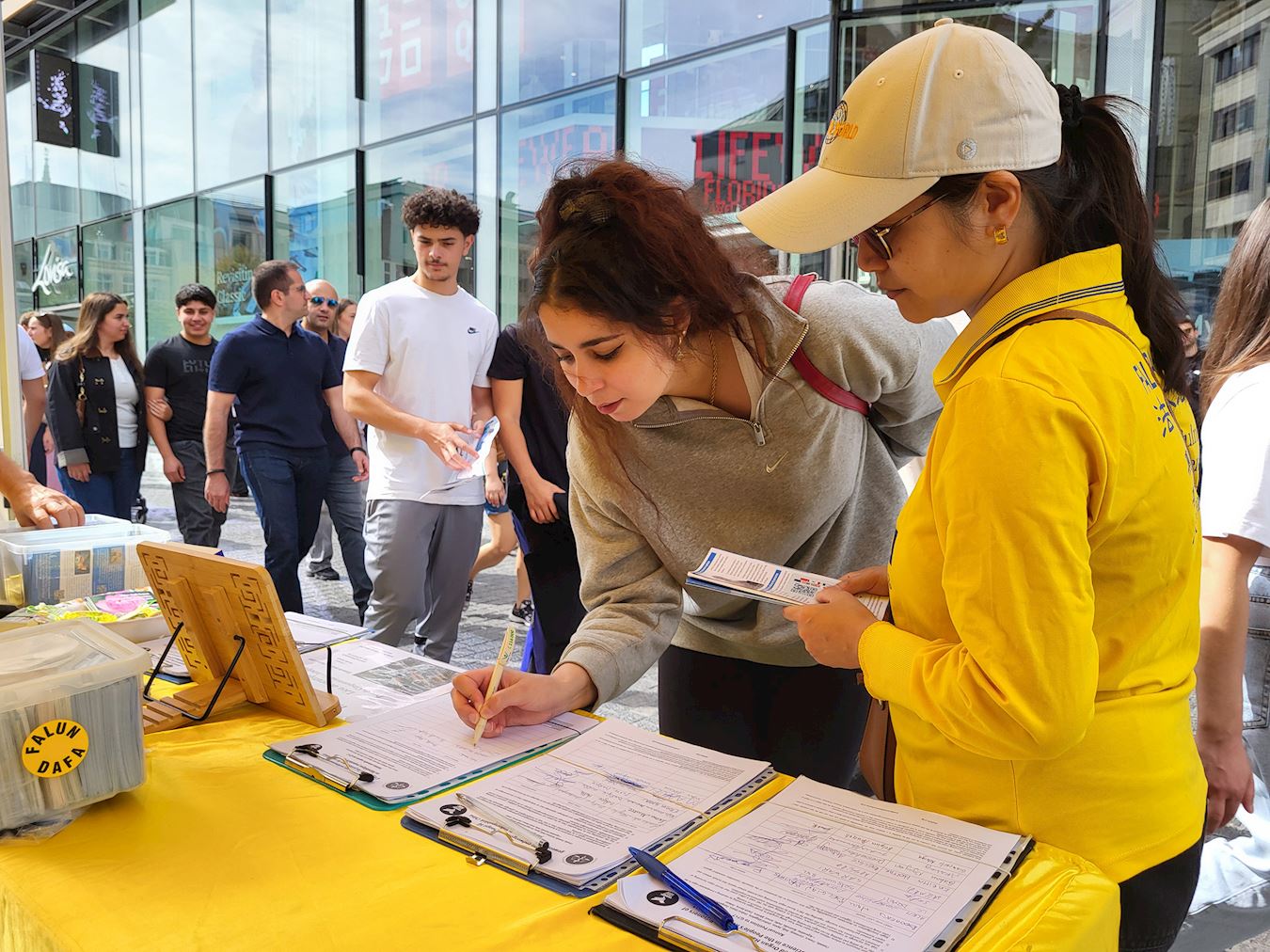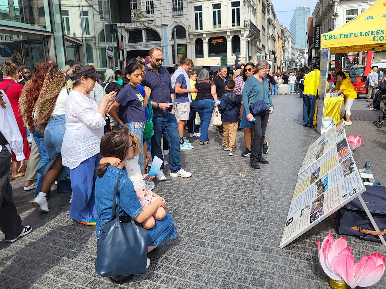 Tokom događaja u Briselu 8. septembra 2025. godine, praktikanti su ljudima govorili o progonu Falun Dafe od strane Komunističke partije Kine (KPK) i državnoj žetvi organa. Mnogi prolaznici su se zaustavili da pročitaju transparente i potpisali peticiju za okončanje kršenja ljudskih prava.