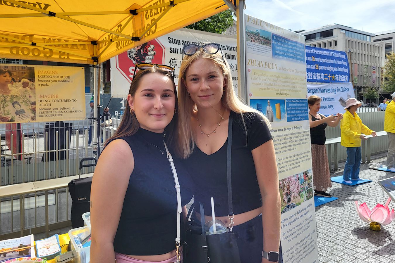 Karolina i Federika su gledale demonstracije vežbi i čitale informacije i izrazile podršku praktikantima. „Nikada ranije nisam čula za Falun Dafu, i ovo je prvi put da saznajem o tome“, rekla je Karolina.