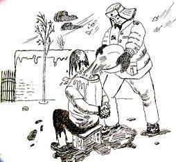 Postoje dvije glavne metode mučenja kojima se praktikantice podvrgavaju. Jedna je polijevanje hladnom vodom. Zimi se odvode u skladište i skidaju do donjeg rublja. Dok puše hladan vjetar kroz otvorene prozore praktikantice su prisiljene stajati u lavoru dok bivaju neprestano polijevane hladnom vodom od glave do pete.