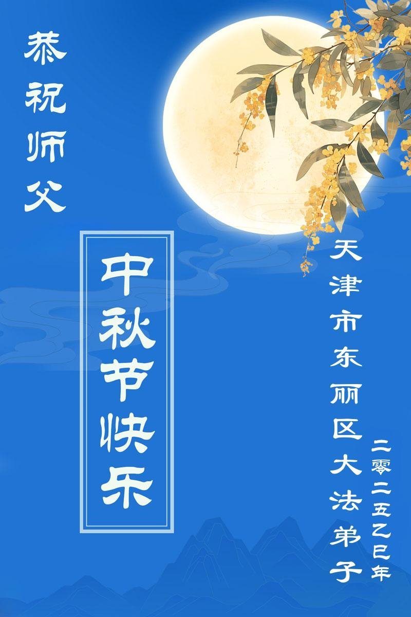 Falun Dafa praktikanti iz Tjenđina s poštovanjem žele Učitelju Li Hongdžiju srećan Praznik sredine jeseni (18 čestitki)
