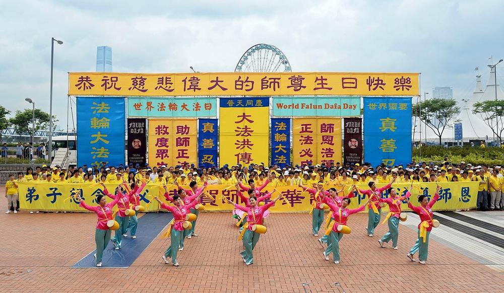 Toga jutra, stotine izvođača iz Hong Konga je udaralo u bubnjeve i izvodilo vježbe na Edinburg Trgu. Sa nekoliko kompozicija koje su komponirane za tu prigodu oni su poželjeli sretan rođendan Učitelju Li Hongzhiju.