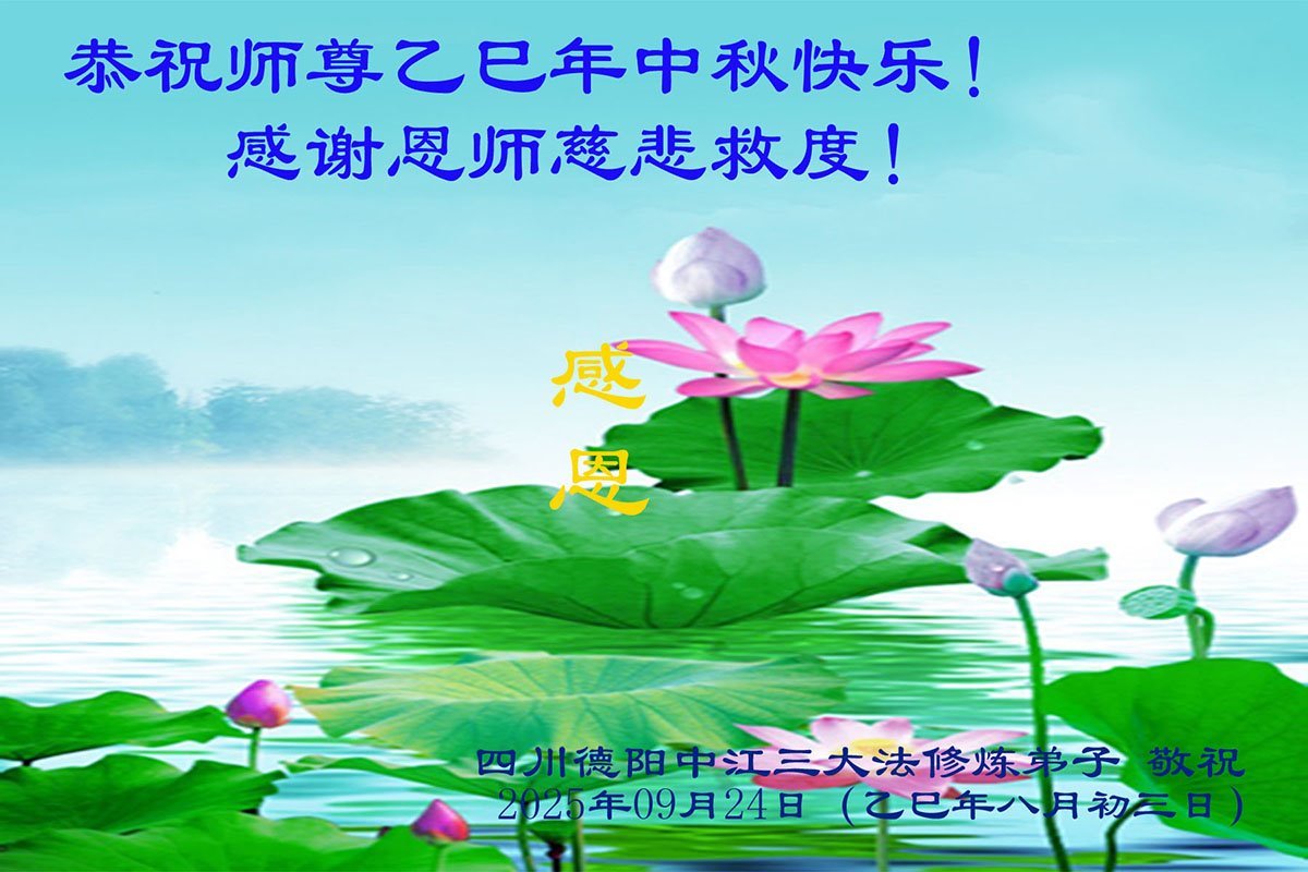 Falun Dafa praktikanti iz provincije Sičuan s poštovanjem žele Učitelju Li Hongdžiju srećan Praznik sredine jeseni (19 čestitki)
