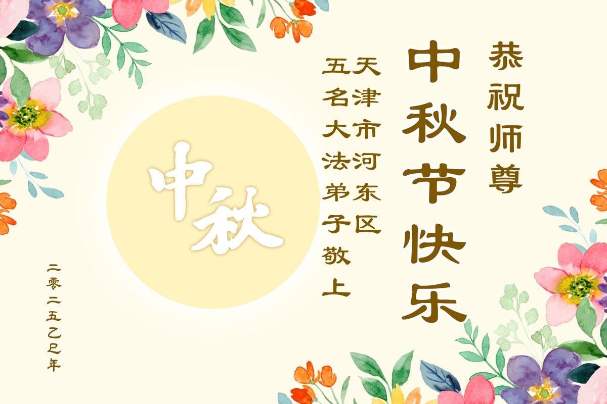 Falun Dafa praktikanti iz Tjenđina s poštovanjem žele Učitelju Li Hongdžiju srećan Praznik sredine jeseni (18 čestitki)