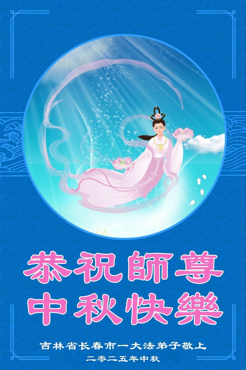 Falun Dafa praktikanti iz grada Čangčuna s poštovanjem žele Učitelju Li Hongdžiju srećan Praznik sredine jeseni (24 čestitke)