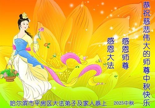 Falun Dafa praktikanti iz grada Harbina žele poštovanom Učitelju srećan Praznik sredine jeseni!
