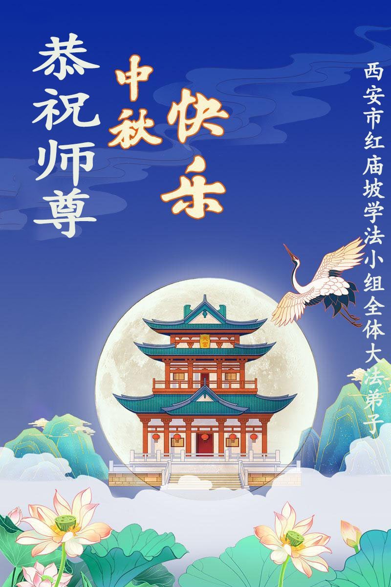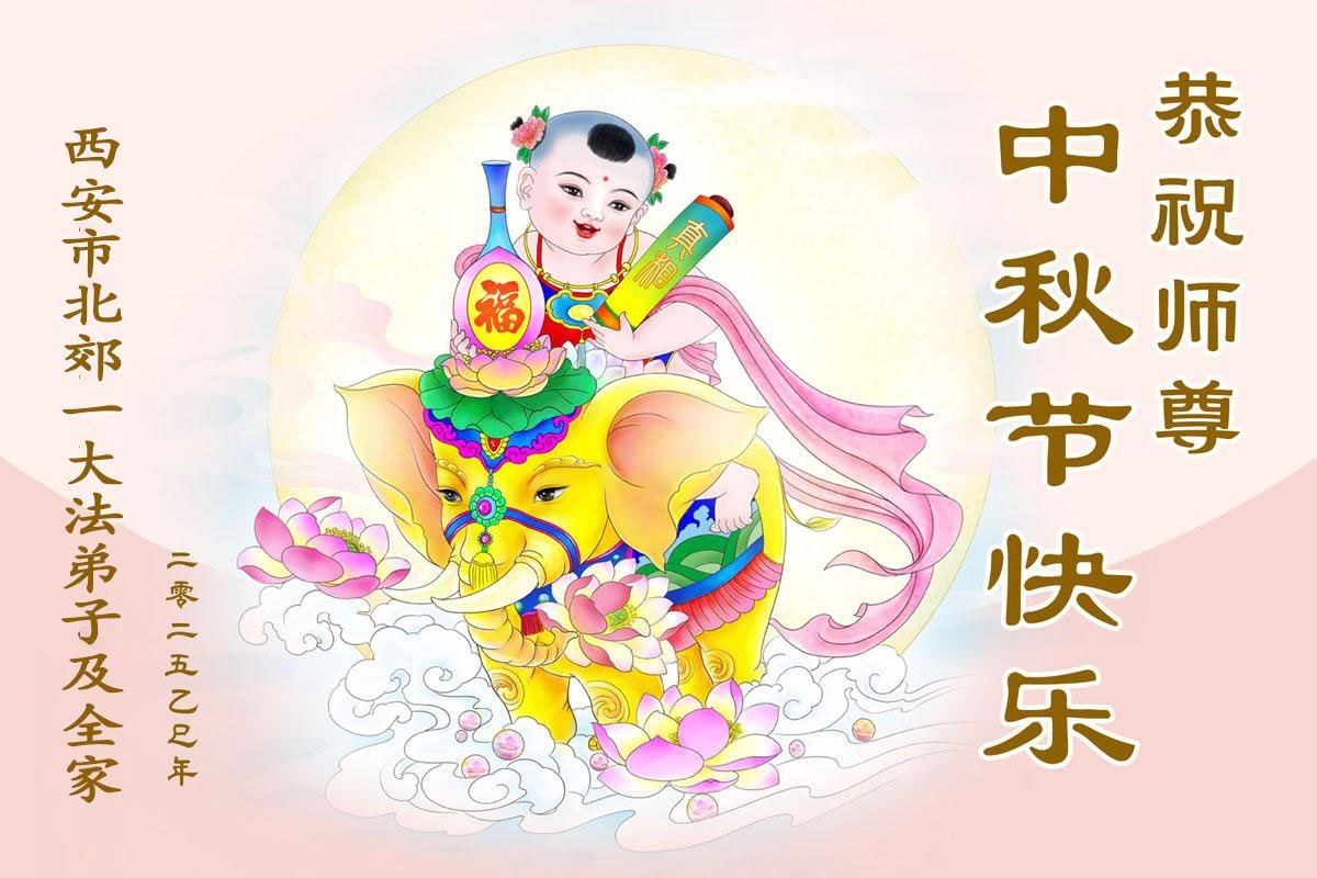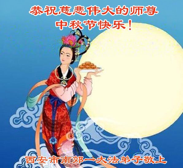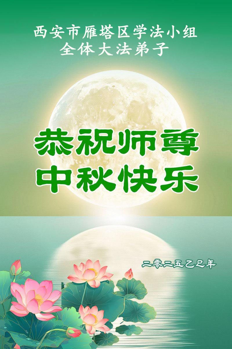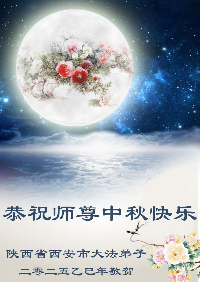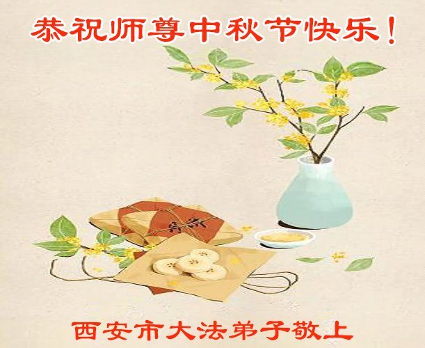 Falun Dafa praktikanti iz grada Si'ana s poštovanjem žele učitelju Li Hongdžiju srećan Praznik sredine jeseni (19 čestitki)