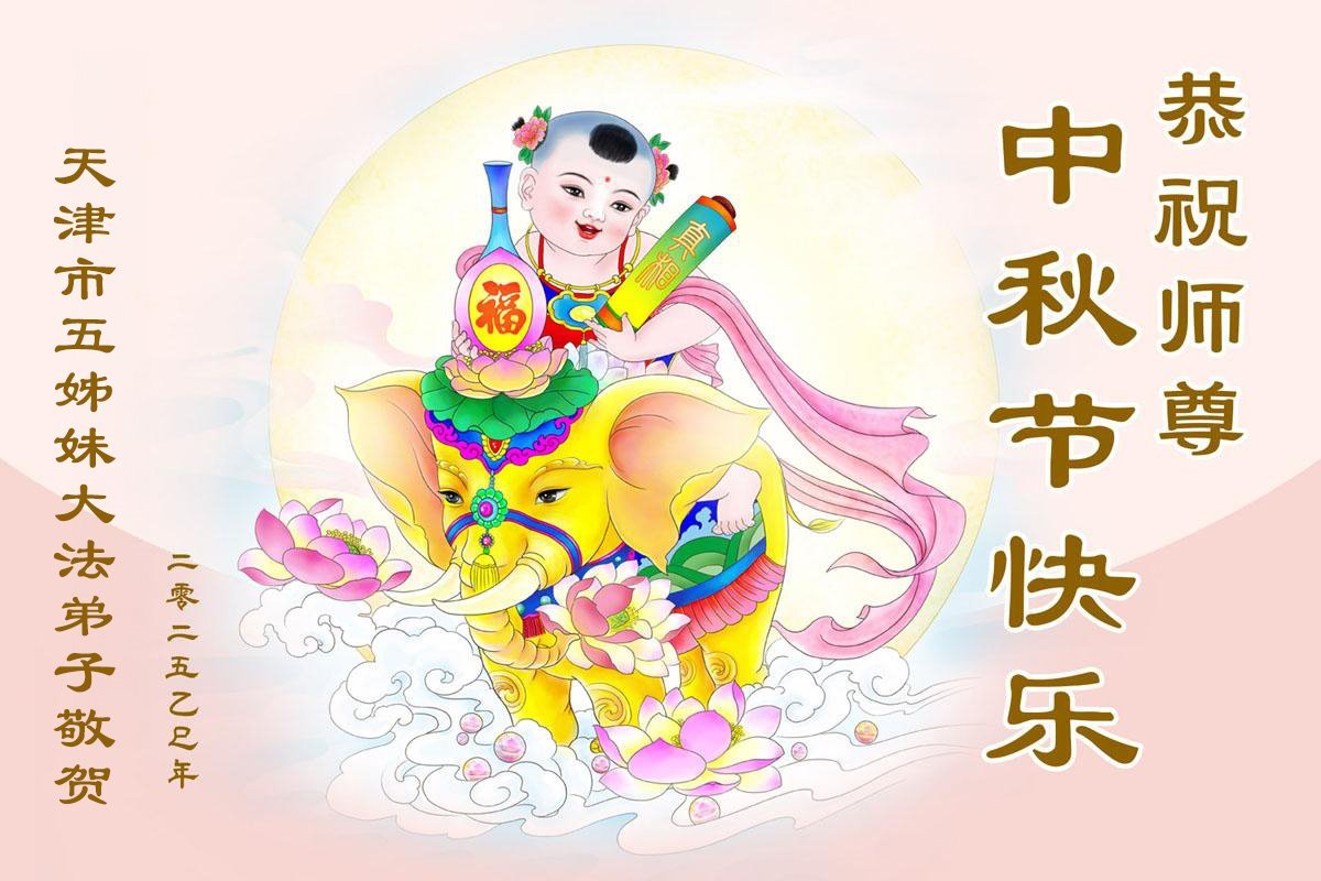 Falun Dafa praktikanti iz Tjenđina s poštovanjem žele Učitelju Li Hongdžiju srećan Praznik sredine jeseni (20 čestitki)