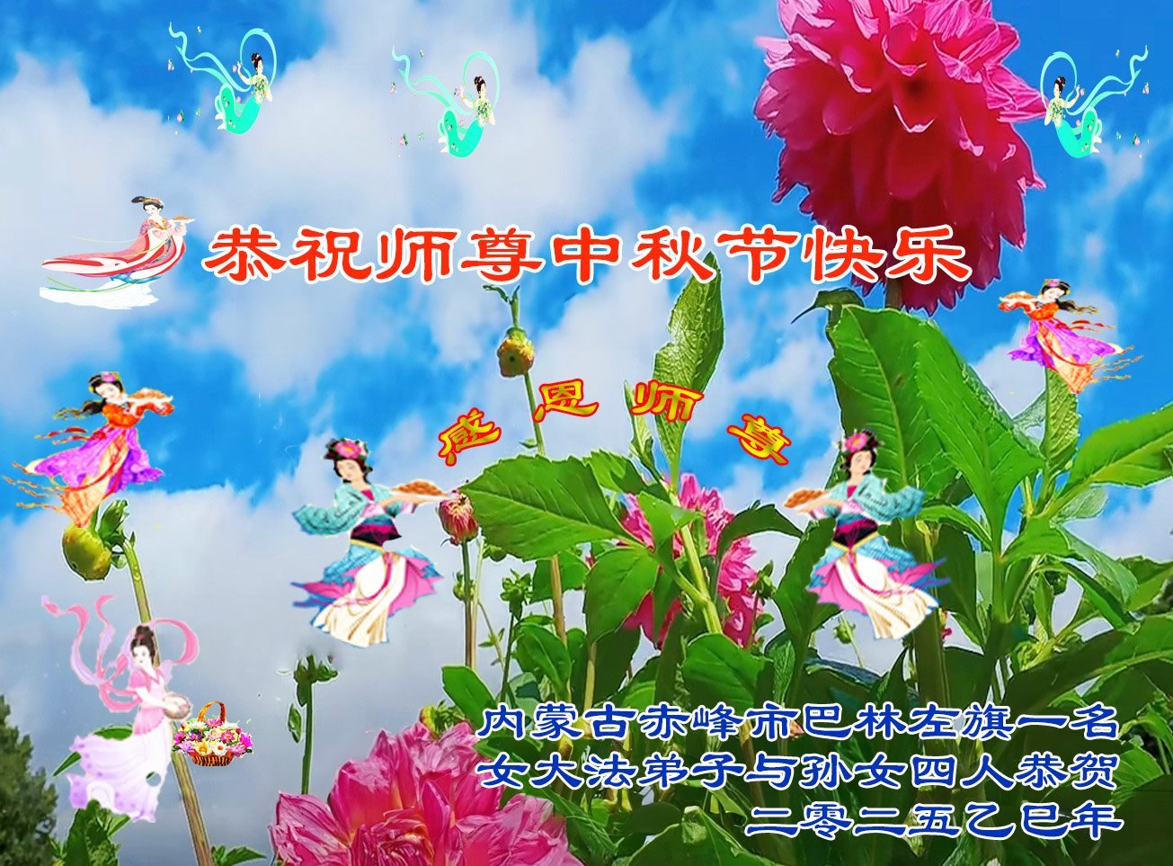 Praktikanti Falun Dafe u autonomnoj oblasti Unutrašnja Mongolija s poštovanjem žele učitelju Li Hongdžiju srećan Praznik sredine jeseni (18 čestitki)