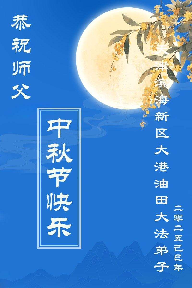 Praktikanti u gradu Dongjing i naftnom polju Šengli u provinciji Šandong žele Učitelju srećan Praznik sredine jeseni. Čestitka glasi: „Sa dolaskom Praznika sredine jeseni, mi, učenici, zahvalni smo na Učiteljevoj bezgraničnoj samilosti. Sledićemo Učiteljeva učenja i više ceniti ovu dragocenu priliku. Ići ćemo napred sa ispravnim mislima i hrabro i marljivo proći poslednju deonicu puta.“