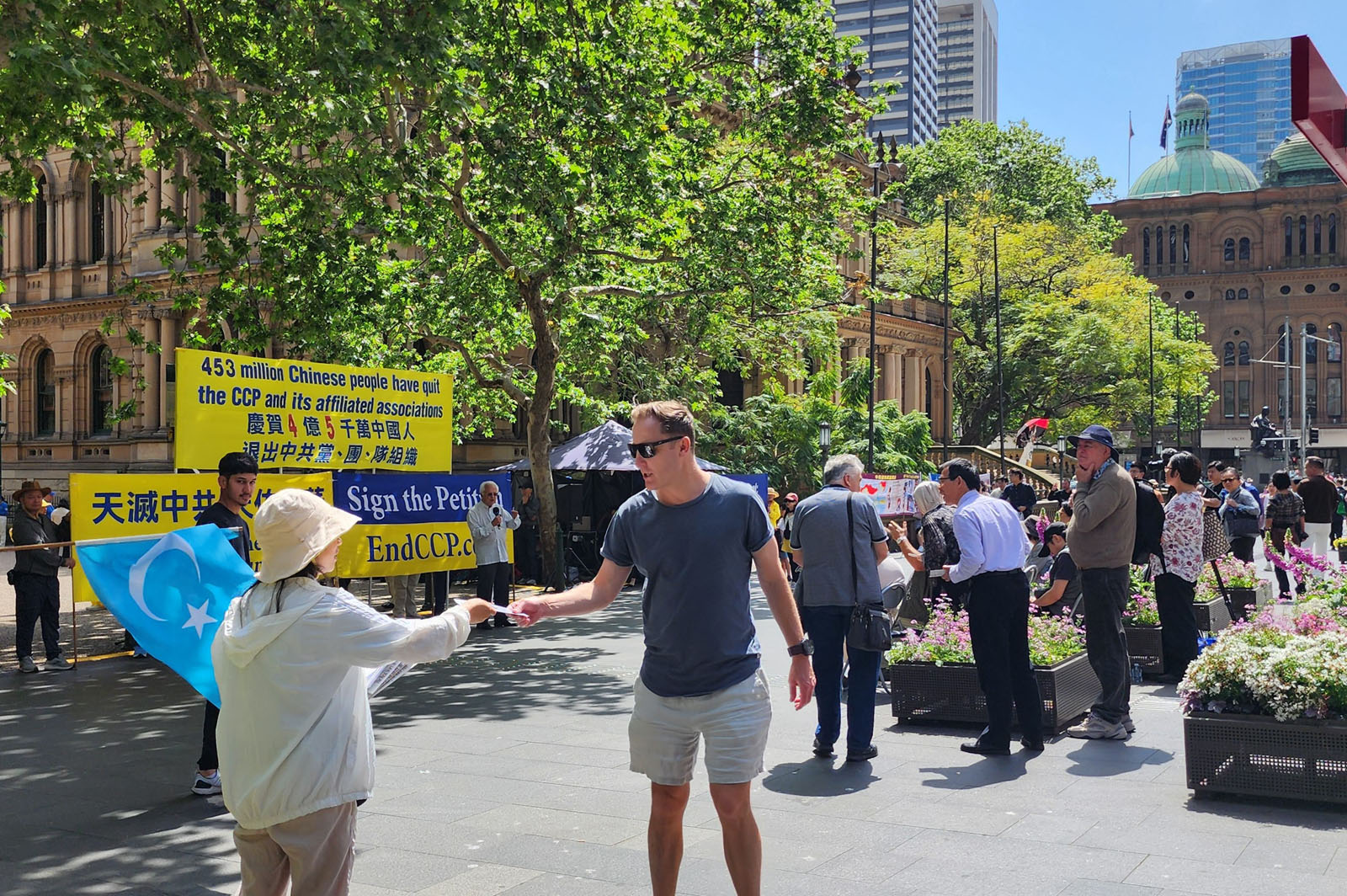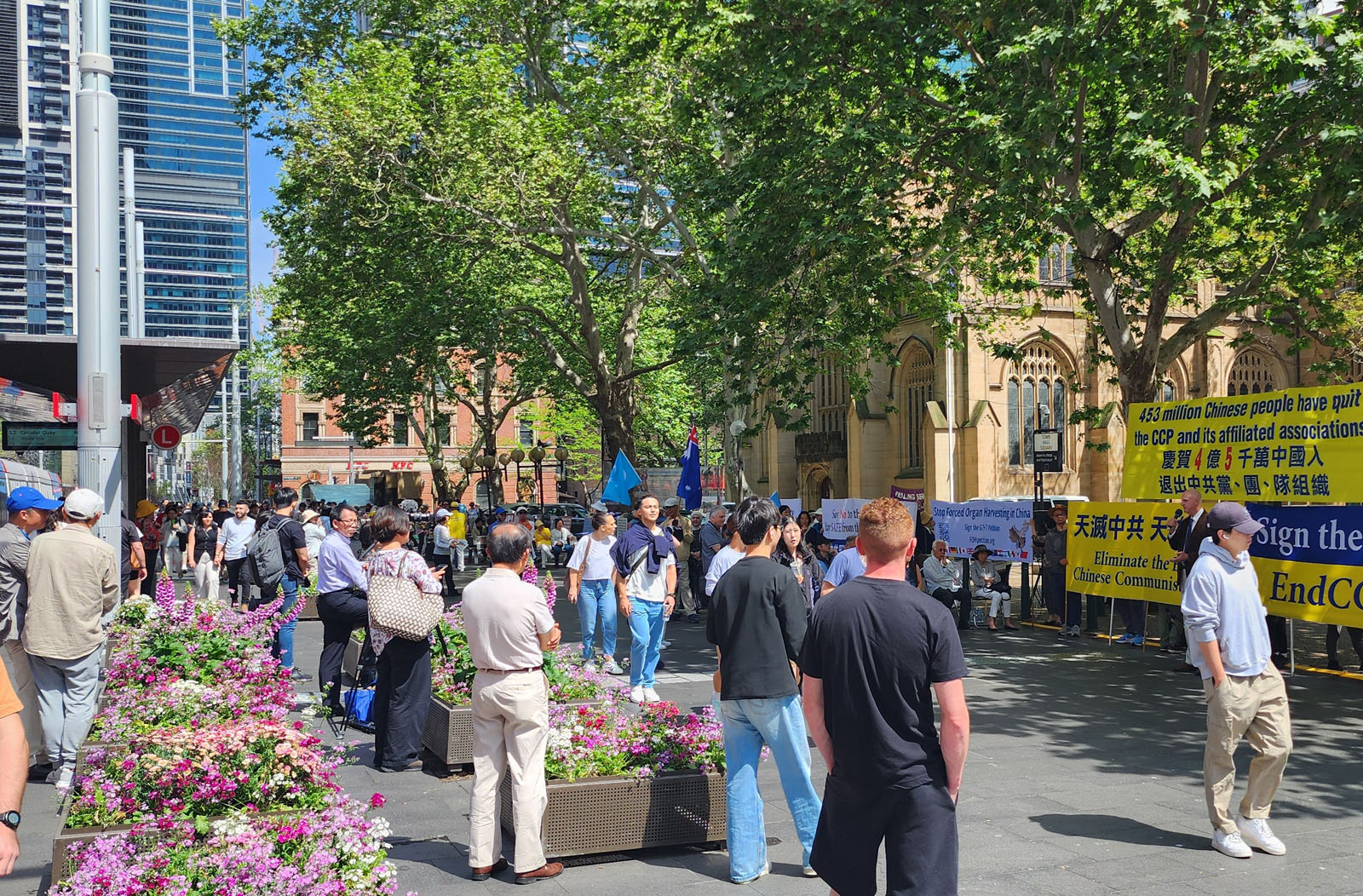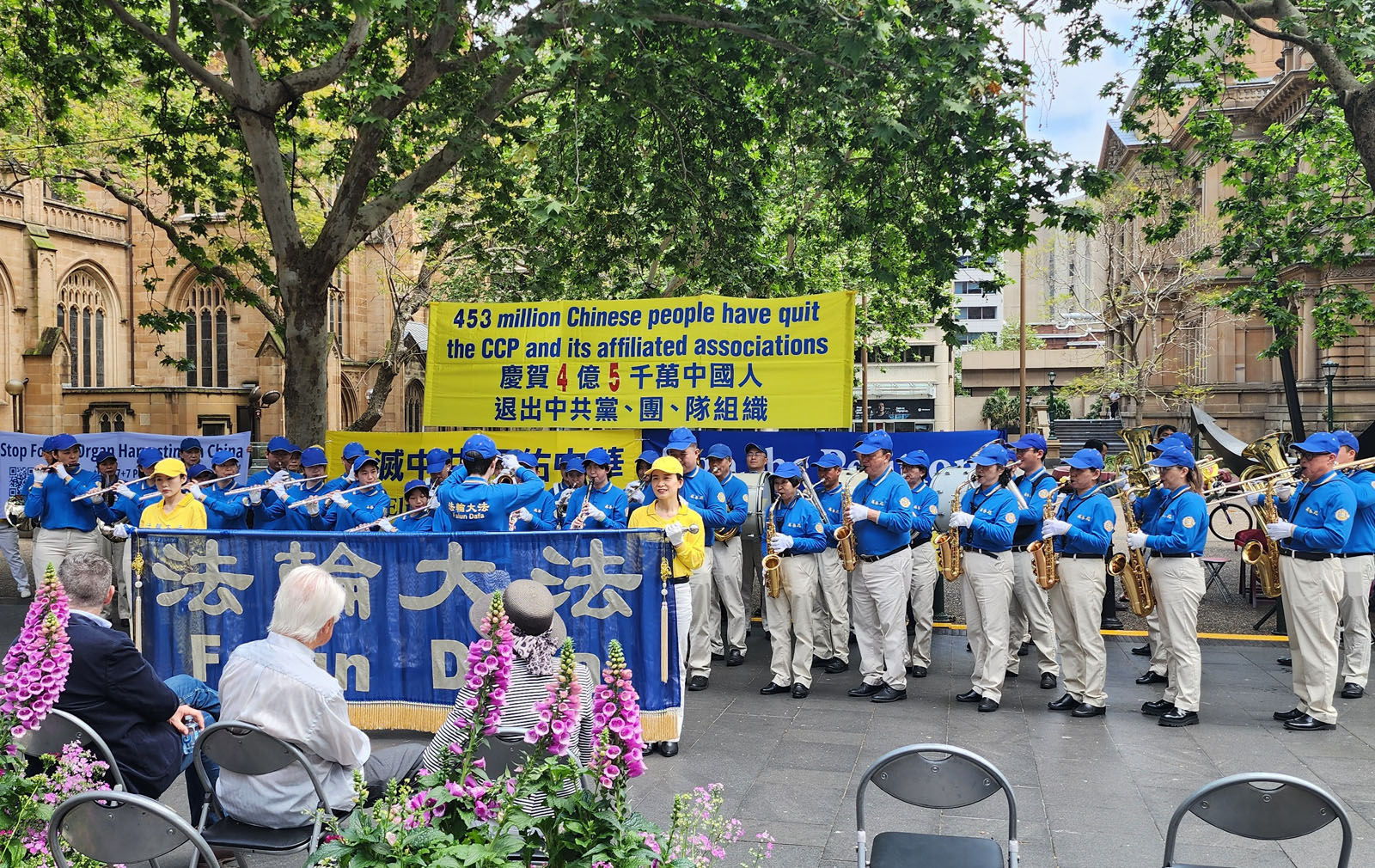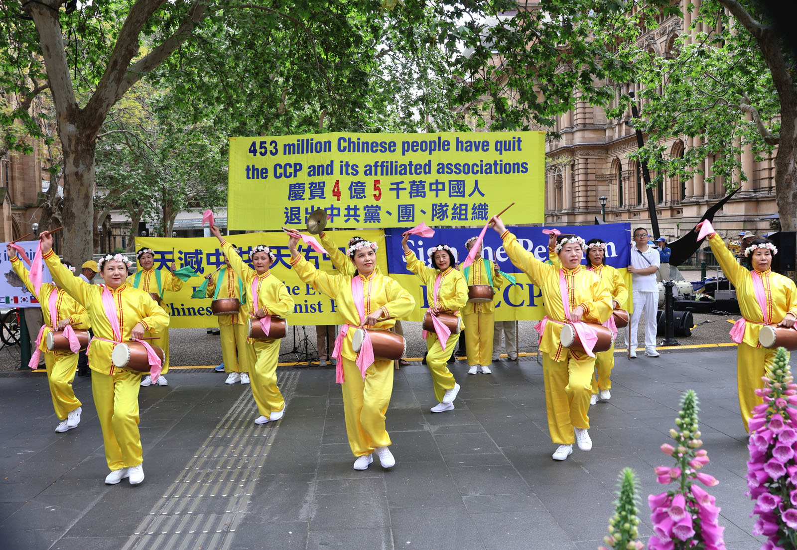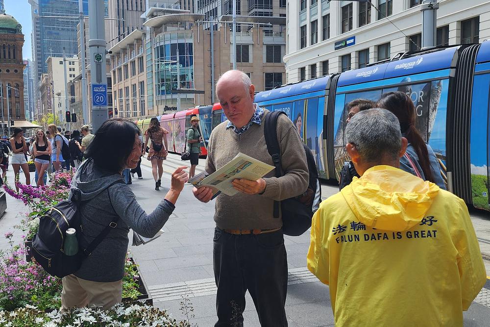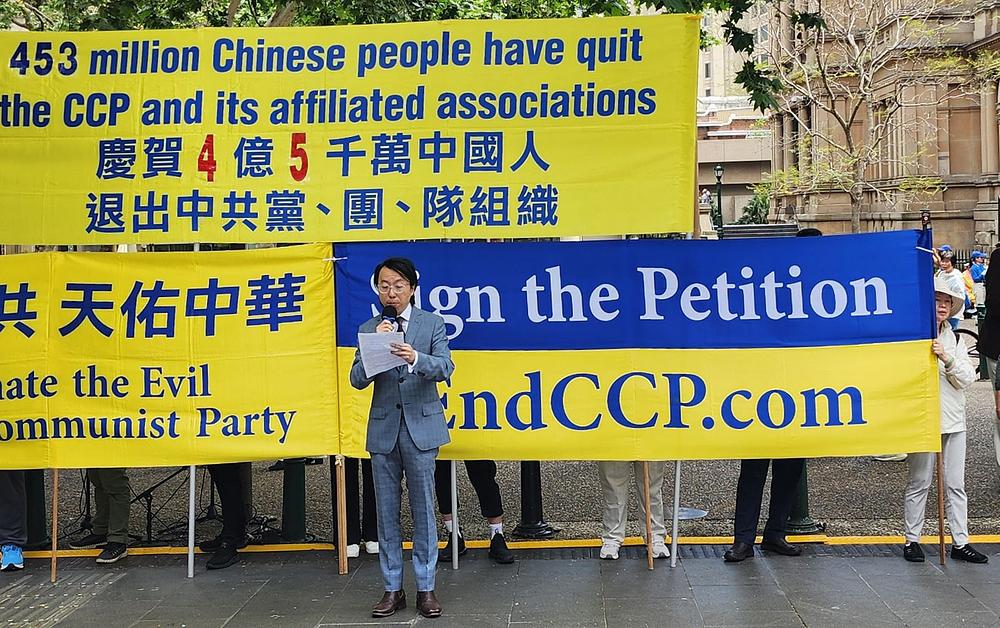 Falun Dafa praktikanti su 28. rujna 2025. održali skup ispred Gradske vijećnice u Sydneyu kako bi proslavili istupanje 450 milijuna Kineza iz Komunističke partije Kine (KPK) i njezinih pridruženih omladinskih organizacija. Gostujući govornici pohvalili su veliki val istupanja iz KPK, nazivajući one dovoljno hrabre da istupe iz organizacija KPK predvodnicima buduće slobodne Kine.