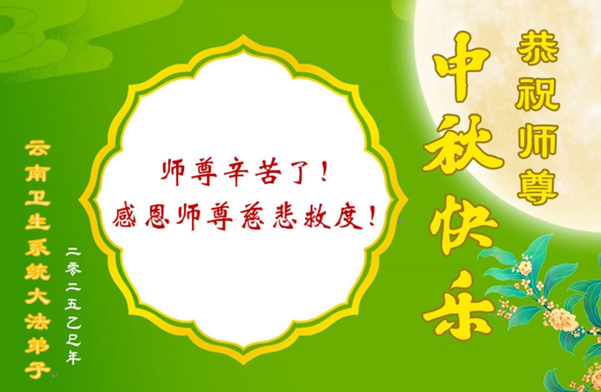 Praktikanti Falun Dafe u različitim profesijama, uključujući pravo, vodozaštitu, računovodstvo, građevinarstvo, elektroenergetske sisteme, naftna polja i upravljanje šumarstvom u provincijama Šandong, Hebej, Đilin, Đijangsu, Šansi, Sičuan i Junan, žele Učitelju srećan Praznik sredine jeseni!