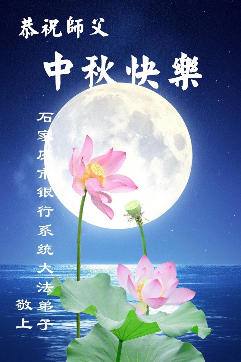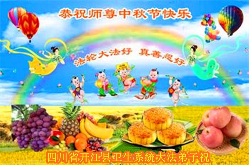 Praktikanti Falun Dafe u različitim profesijama, uključujući bankarstvo, medije i državna preduzeća u Čongkingu i u provincijama Hunan, Hubej, Hebej, Đangsi, Šansi, Heilongđang i Đangsi, žele Učitelju srećan Festival Sredine Jeseni!
