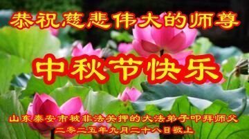 Unatoč kontinuiranom progonu i mučenju u pritvoru, mnogi praktikanti uspjeli su poslati svoje najljepše želje Učitelju Liju povodom Praznika sredine jeseni (6. listopada 2025.). Zahvalili su mu što ih je podučio principima Istinitosti-Suosjećanja-Strpljivosti, svjetioniku koji im je pomogao kroz najmračnija vremena u pritvoru. Zavjetovali su se da nikada neće posustati u svojoj vjeri i izrazili svoju odlučnost da nastave podizati svijest o progonu i širiti blagoslove Falun Dafa.