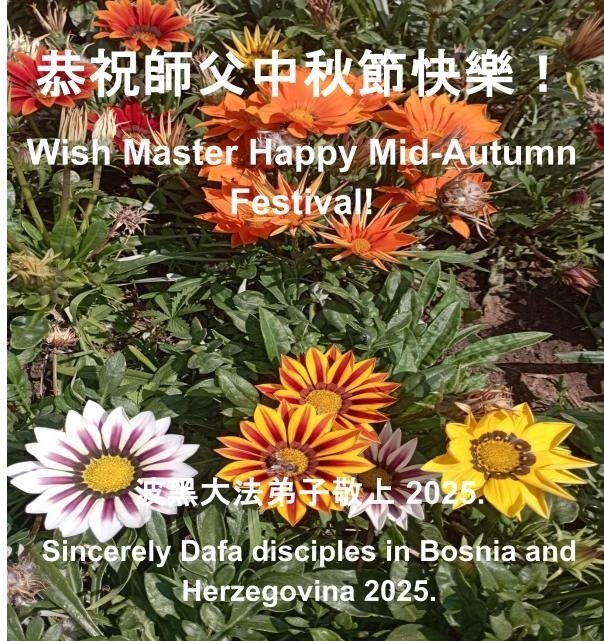 Praznik Sredine Jeseni je vrijeme kada se porodice okupljaju i slave. Ove godine, Falun Dafa praktikanti iz 60 zemalja i regiona poslali su svoje čestitke Minghui stranici kako bi se zahvalili osnivaču Falun Dafa, Učitelju Li Hongdžiju, i poželjeli mu sretan praznik.