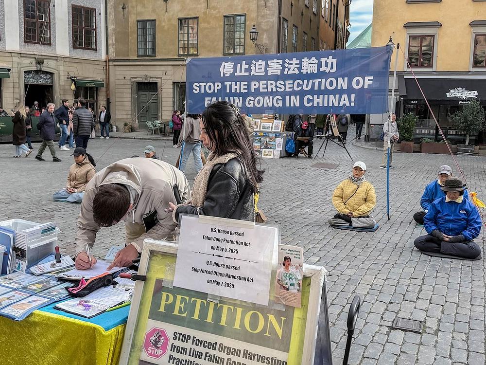 Od petka do nedjelje, tokom dvije sedmice u oktobru 2025. godine, Falun Dafa praktikanti su u Stockholmu održali seriju događaja u blizini Nobelovog muzeja kako bi podizali svijest o Falun Dafa i o tome kako Komunistička partija Kine (KPK) progoni ovu miroljubivu duhovnu praksu iz Kine.
