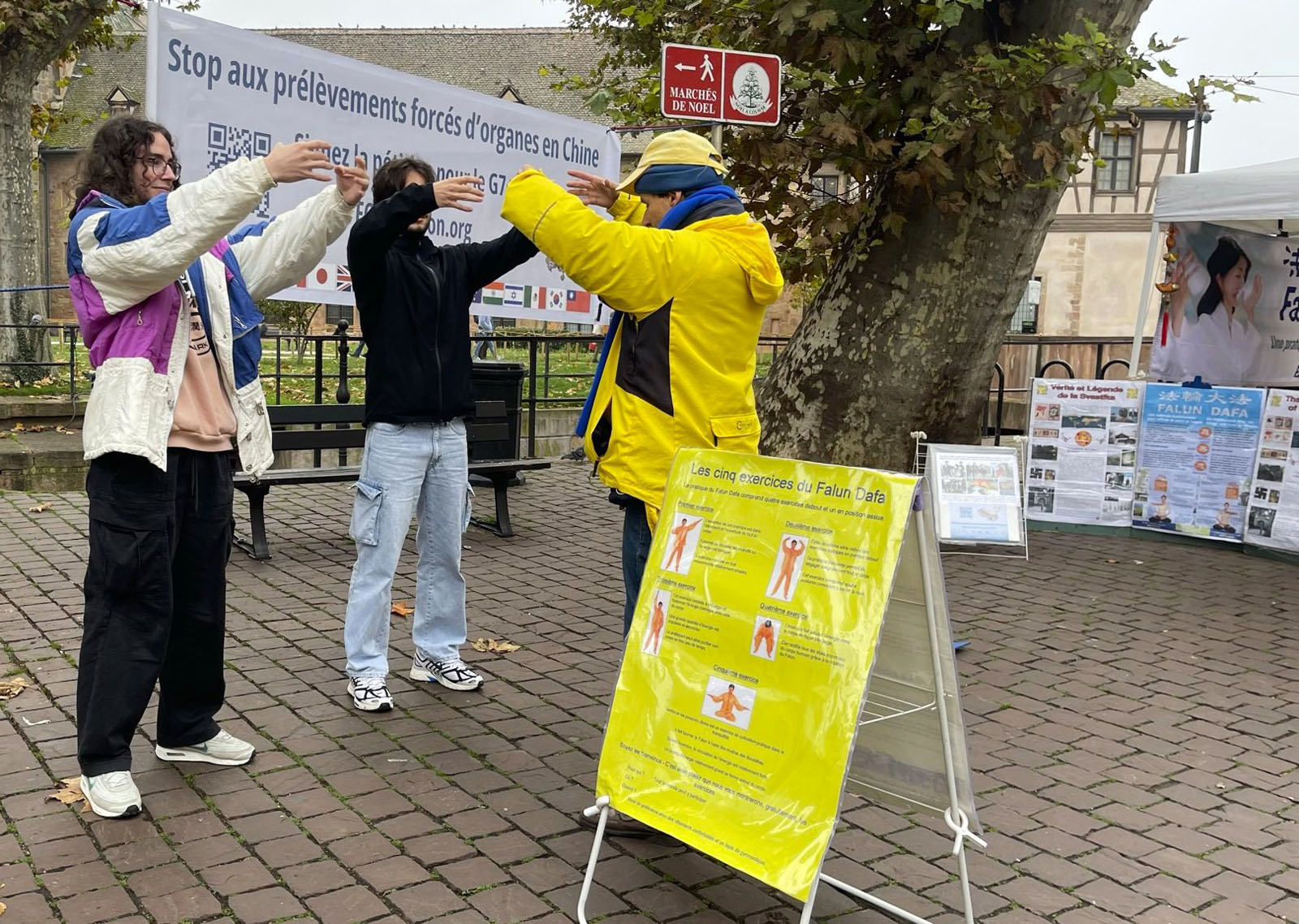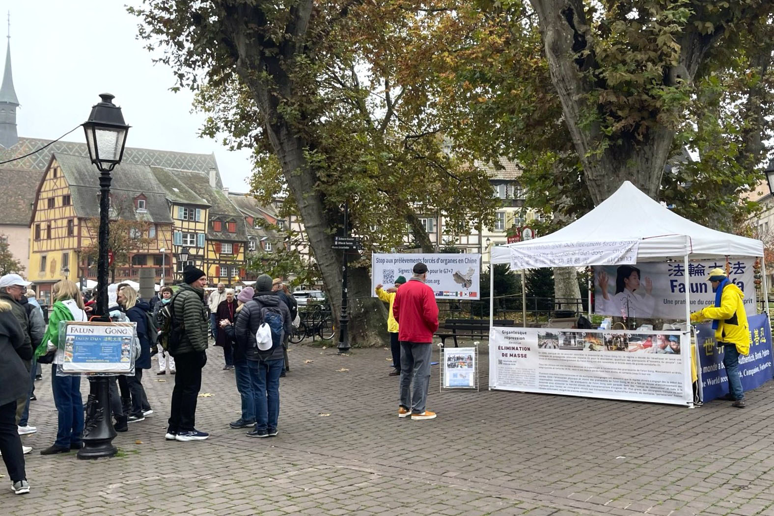 11.novembra 2025, praktikanti u istočnoj Francuskoj održali su aktivnosti u centru Kolmara. Lokalni stanovnici i turisti su saznali za Falun Dafu i mnogi su potpisali peticiju kojom se poziva na zaustavljanje prinudne žetve organa od strane KPK.