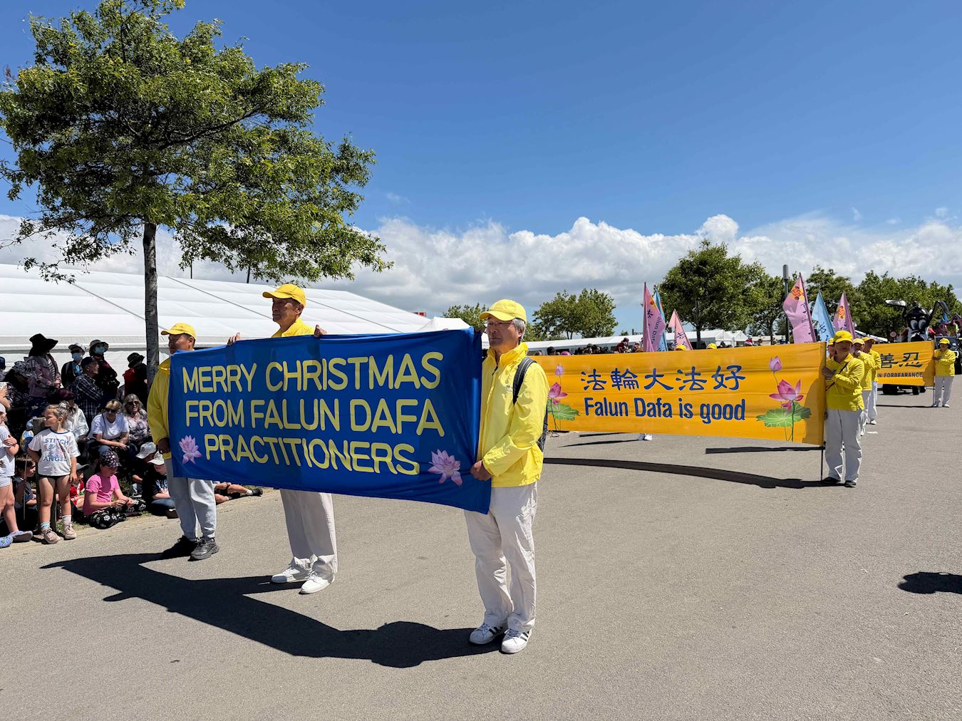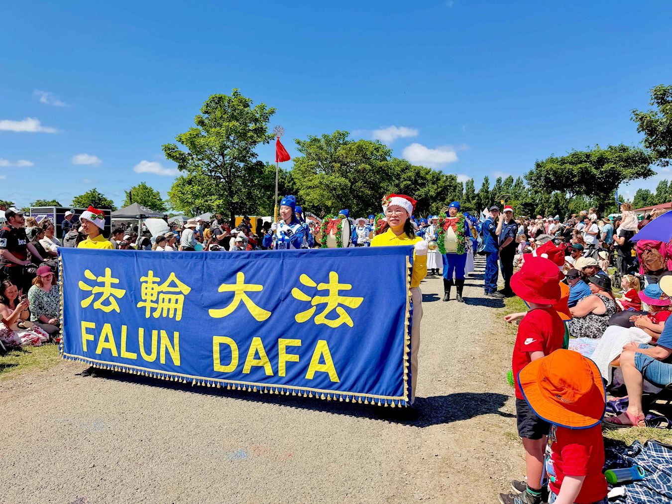 Mnogi gradovi na Novom Zelandu održavaju božićne parade krajem studenog. Ove godine, praktikanti Falun Dafa primili su pozive iz više od 20 gradova i okruga da se pridruže njihovim godišnjim božićnim paradama. Njihov tim s marširajućim orkestrom Tian Guo, plesom zmajeva i bubnjevima oko struka sudjelovali su u paradama u Christchurchu, Onehungi u Aucklandu i Papakuri u Aucklandu, 22. i 23. studenog 2025.