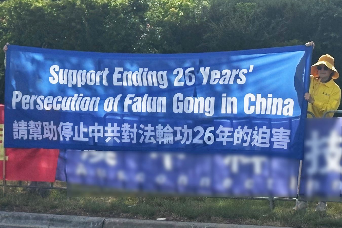 Zhao-va kolona automobila dva je puta prošla pored transparenata praktikanata i čula ih kako viču: „Falun Dafa je dobar“ i „Prestanite progoniti Falun Gong.“