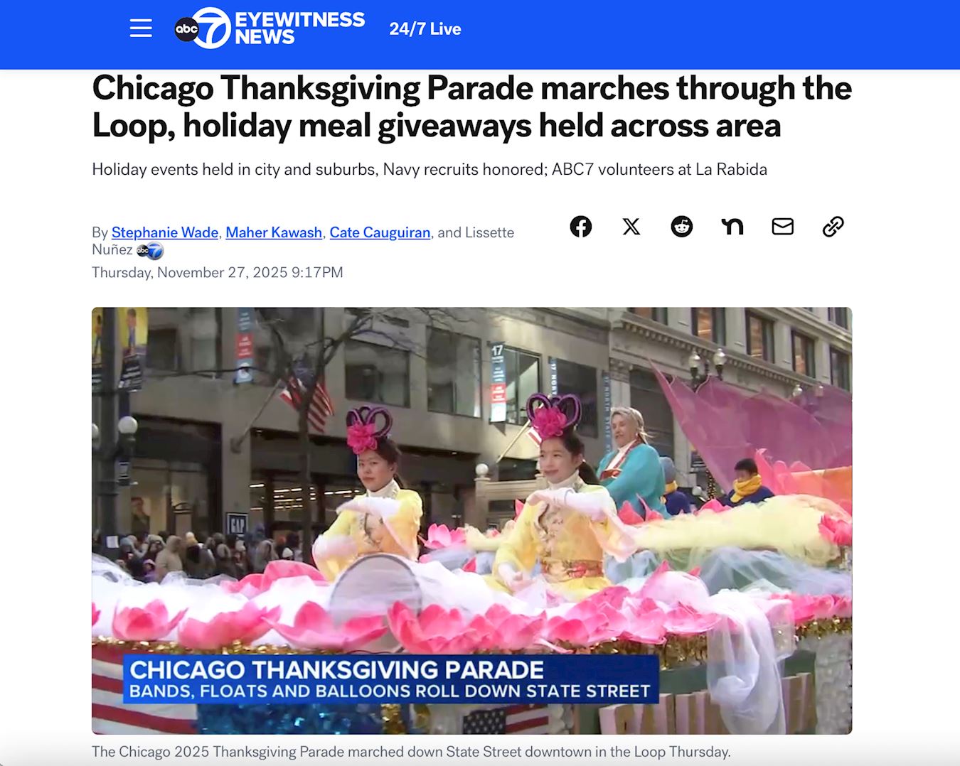 7. novembra 2025, održana je 91. Parada za Dan zahvalnosti u Čikagu. Bio je to najhladniji dan zime do sada u Čikagu, ali su mnogi gledaoci ispunili ulice da bi posmatrali.
