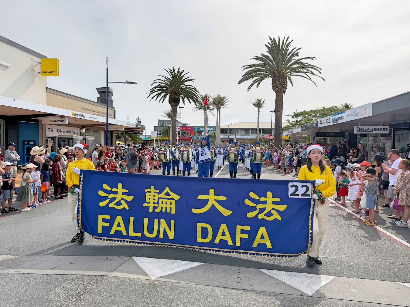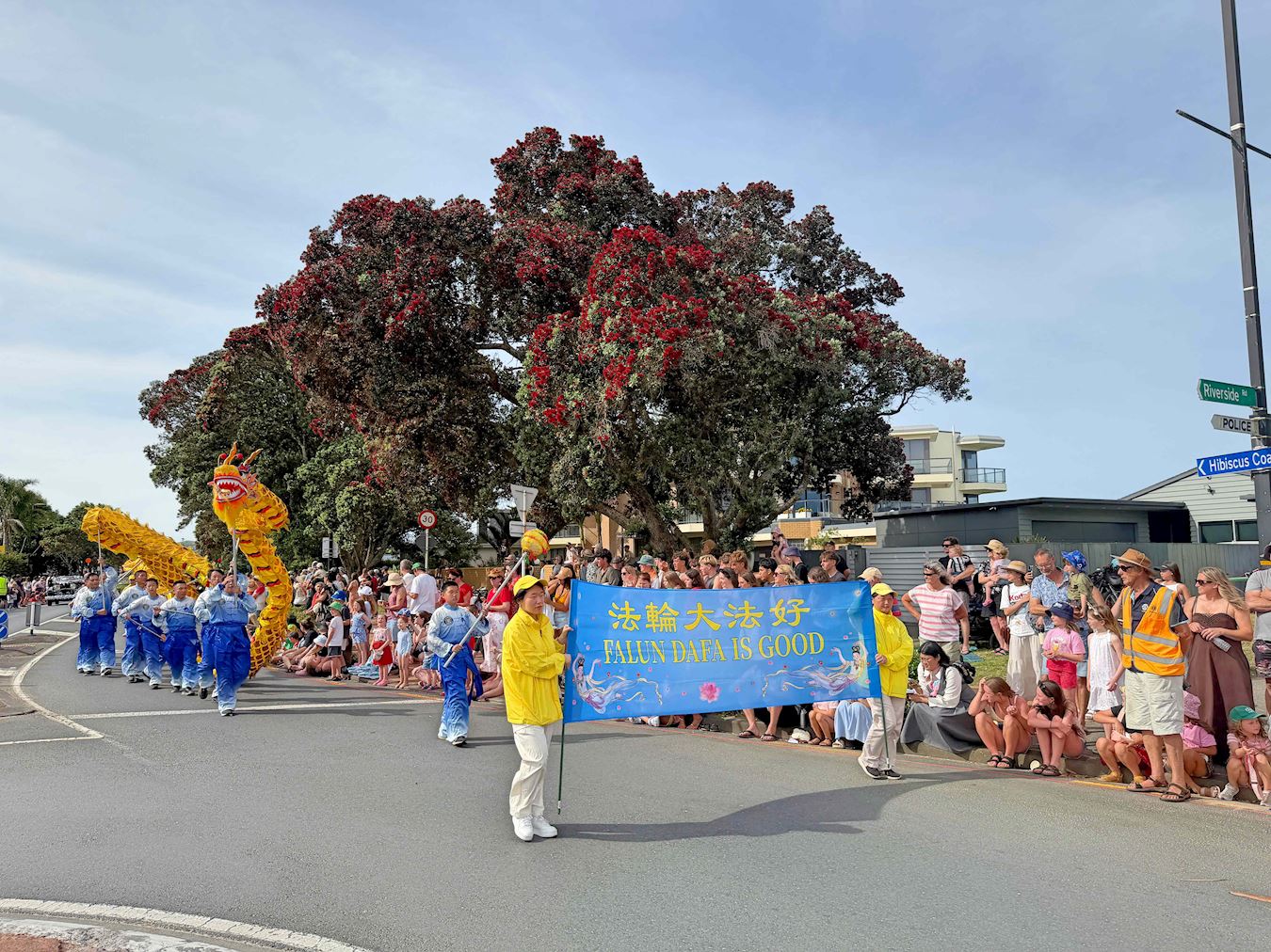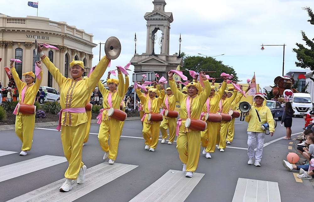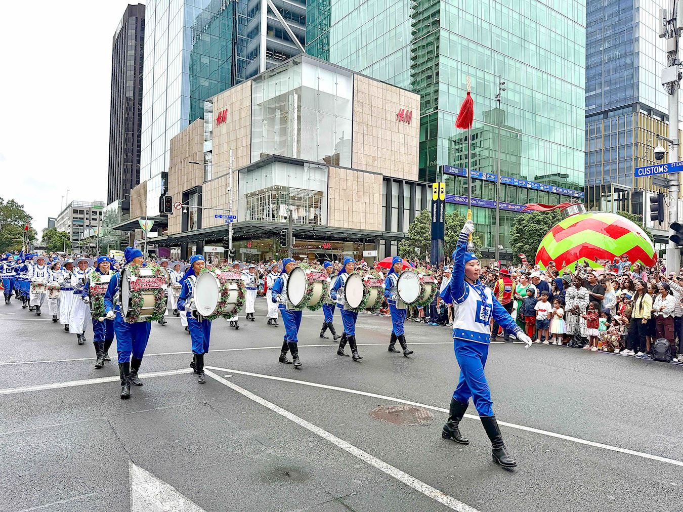29. i 30. novembra 2025, Falun Dafa praktikanti na Novom Zelandu učestvovali su na pet božićnih parada u četiri grada na Severnom i Južnom ostrvu. Parade su održane u Oklandu, Orevi kod Oklanda, Rotorui, Danidinu i Inverkargilu.