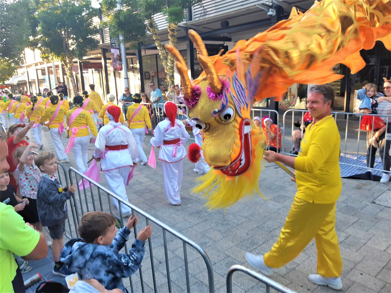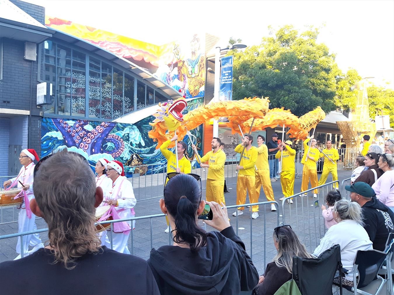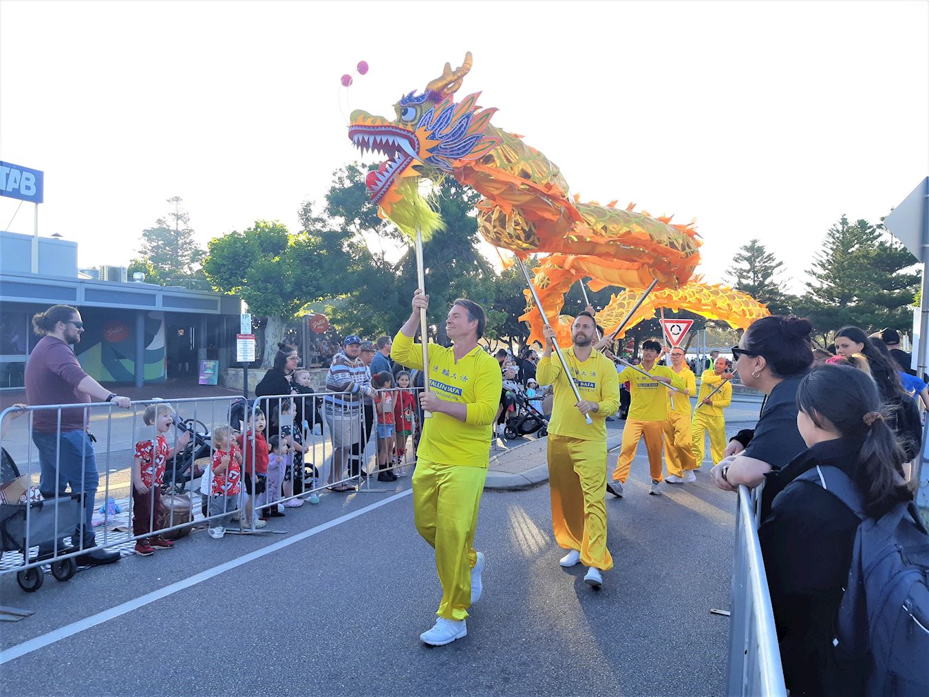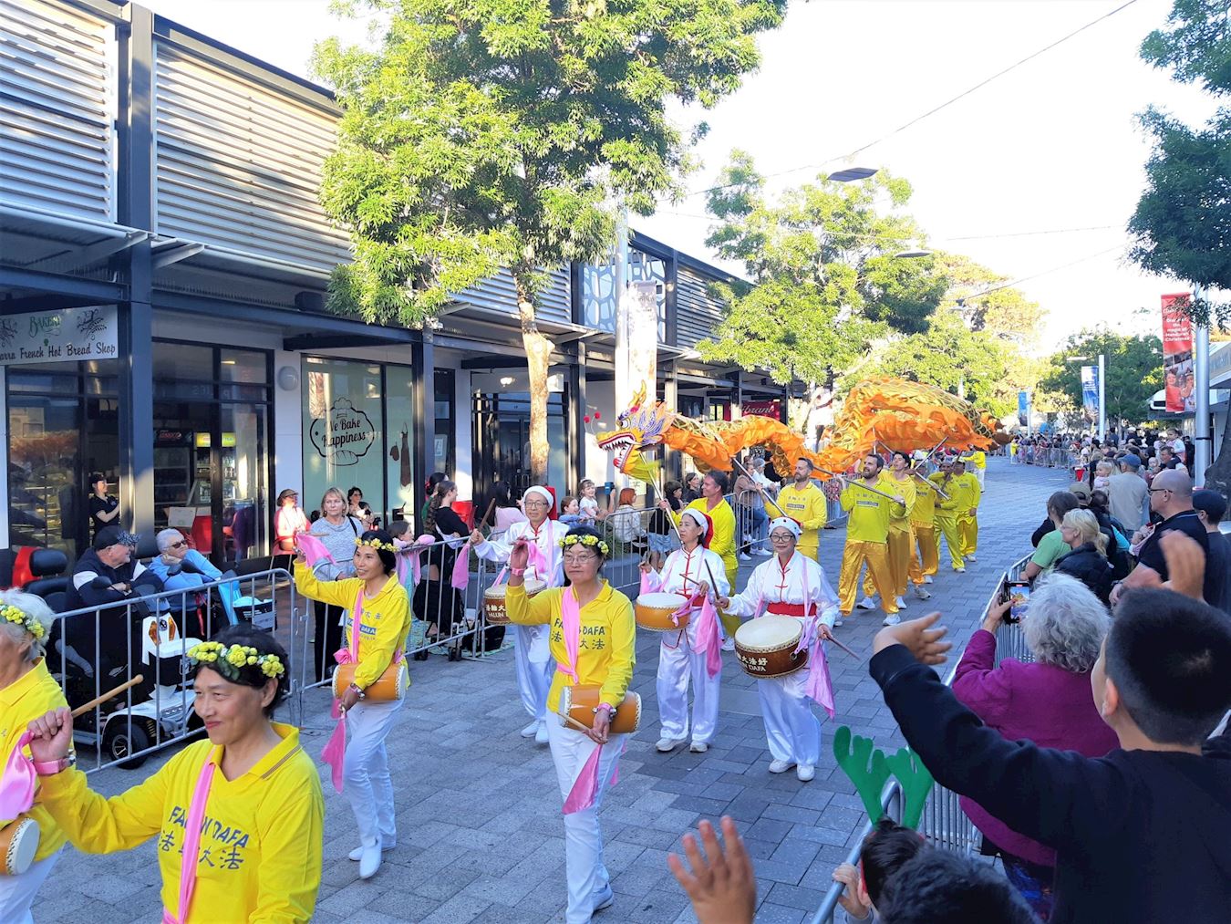 Nastup Falun Dafa grupe je uključivao nebeske vile, kineske dobošare i nastupe plesača sa zmajevima. Mnogi ljudi, koji su stajali duž rute kojom se parada kretala su ih bodrili, pljeskali, hvalili i snimali nastup praktikanata. Neki su čak plesali uz muziku i ritam bubnjeva. Ljudi su bili puni hvale za jarke boje i miroljubivu energiju praktikanata. Mnogi su se zahvalili praktikantima na učešću.