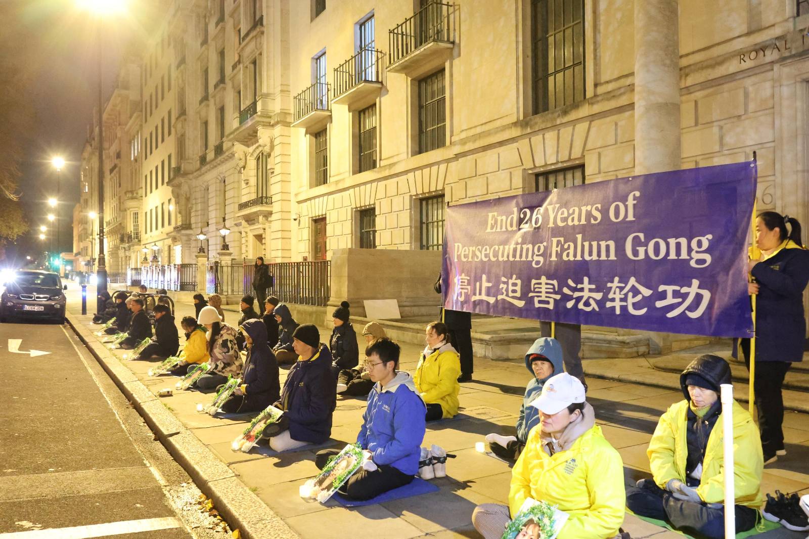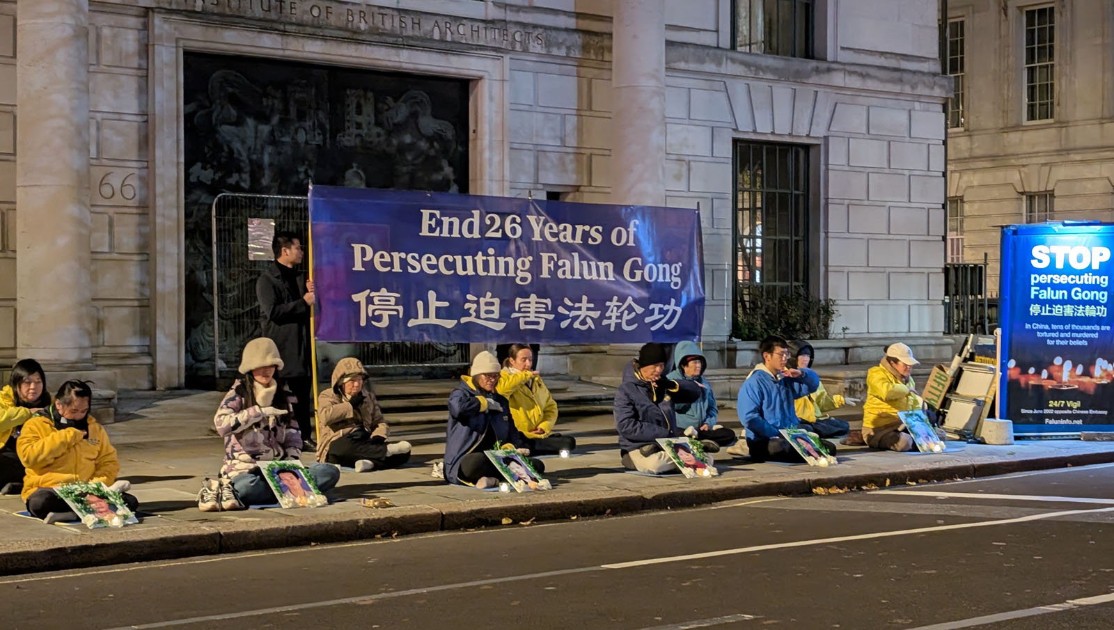 10. decembra 2025, Falun Dafa praktikanti u Velikoj Britaniji održali su bdenje sa svećama u blizini kineske ambasade u Londonu, kako bi odali počast onim praktikantima koji su stradali kao rezultat progona Komunističke partije Kine (KPK), i kako bi protestovali protiv kršenja ljudskih prava Falun Dafe od strane KPK koja traju 26 godina.