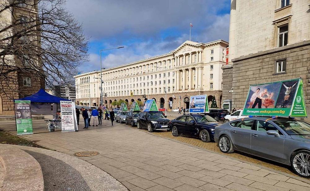 Natpisi na automobilima, napisani na bugarskom jeziku, uključivali su sledeće poruke: „KPK koristi mučenje i ubistva da uništi Falun Gong“, „KPK sprovodi medicinski genocid širokih razmera“, „Cilj KPK je svetska dominacija. Porobljavanje i pljačka maskirani u investicije“, „KPK uzima organe od Falun Dafa praktikanata“, „Da zaustavimo ubijanja – okončajmo KPK!“.