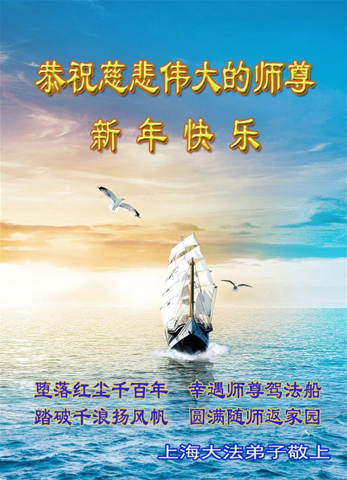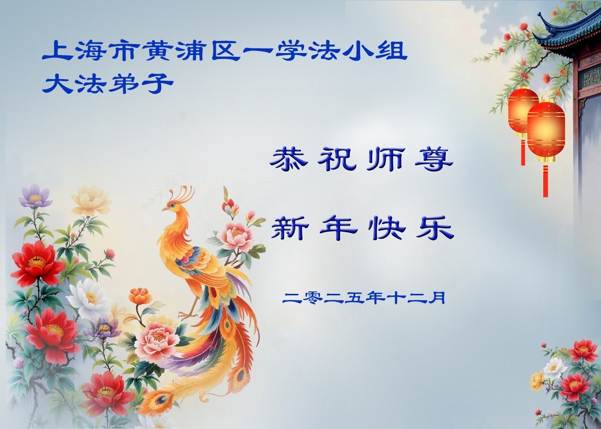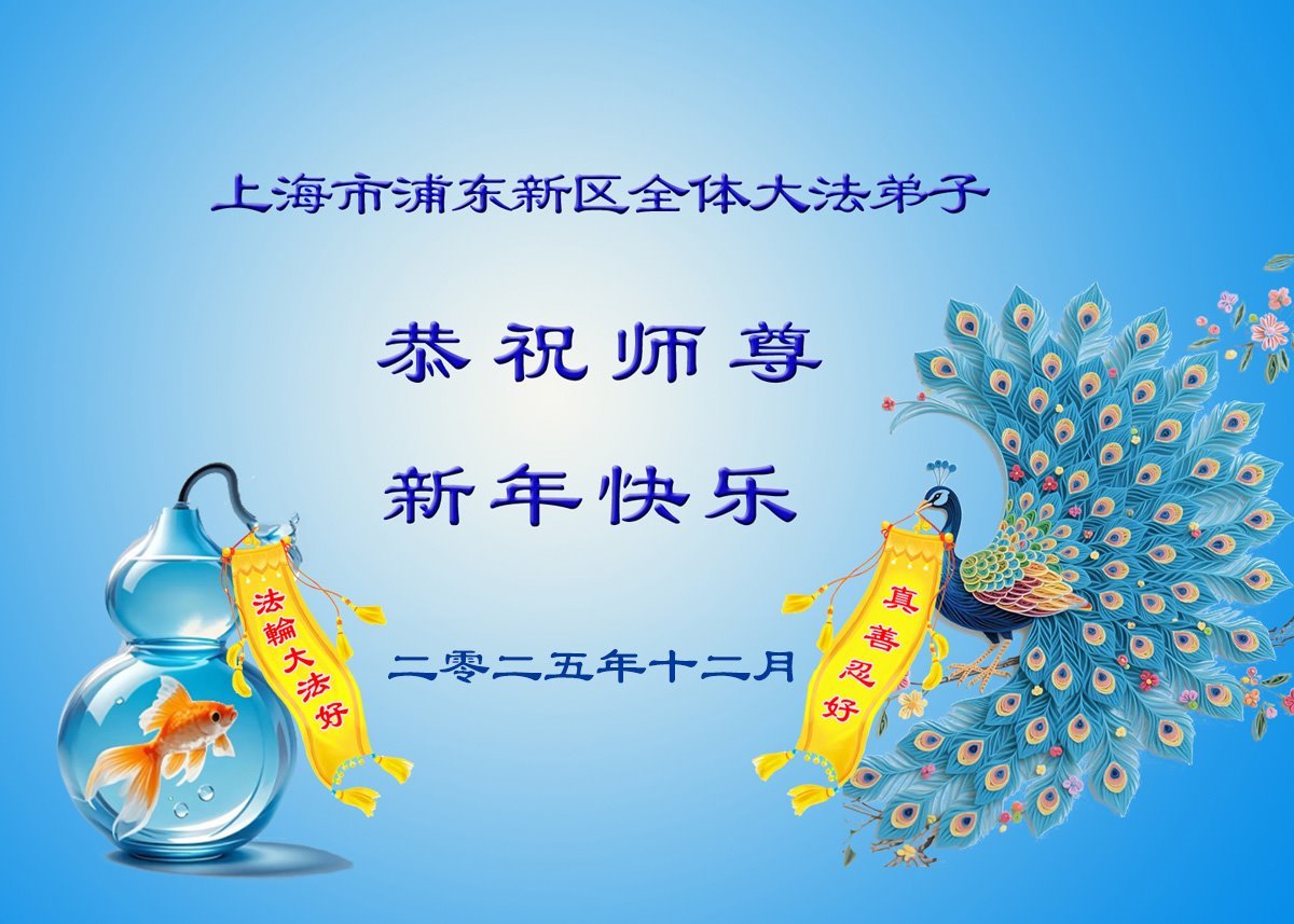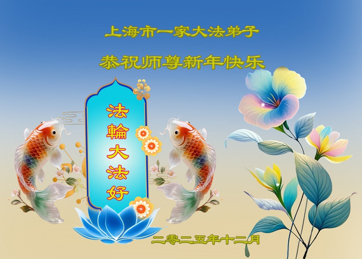 Falun Dafa praktikanti iz Šangaja s poštovanjem žele Učitelju Li Hongdžiju srećnu Novu godinu (37 čestitki)